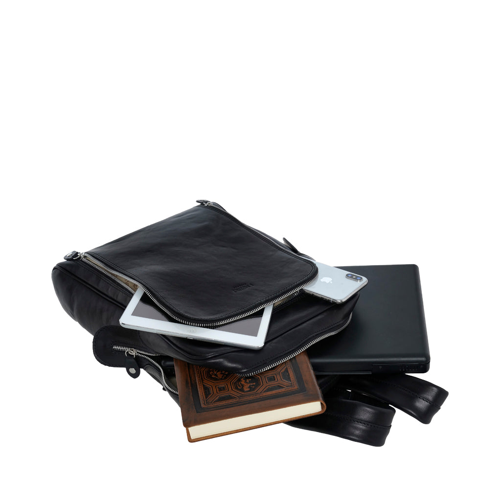681 is a backpack composed of vegetable-tanned calfskin made by Medici Of Florence.