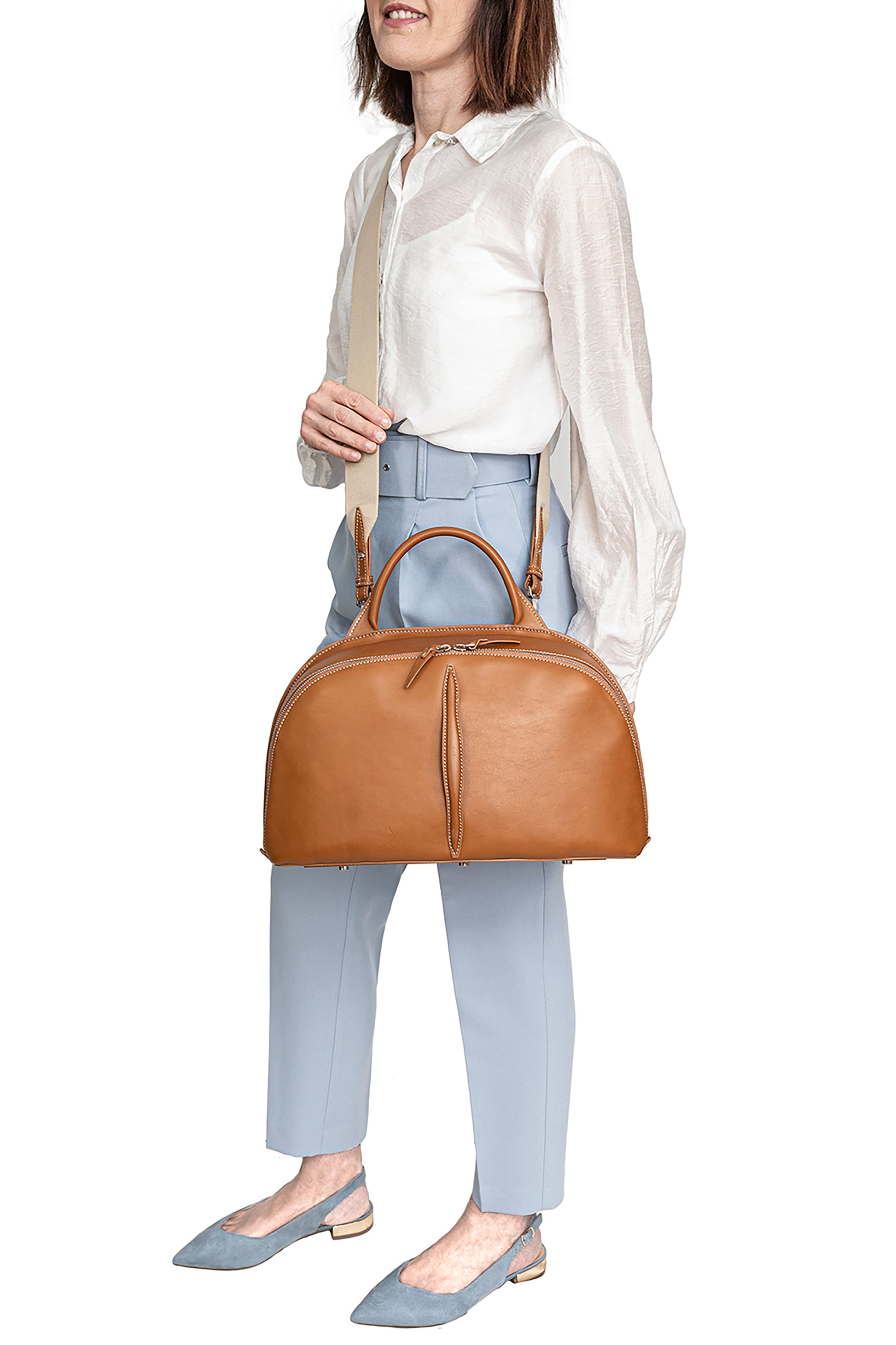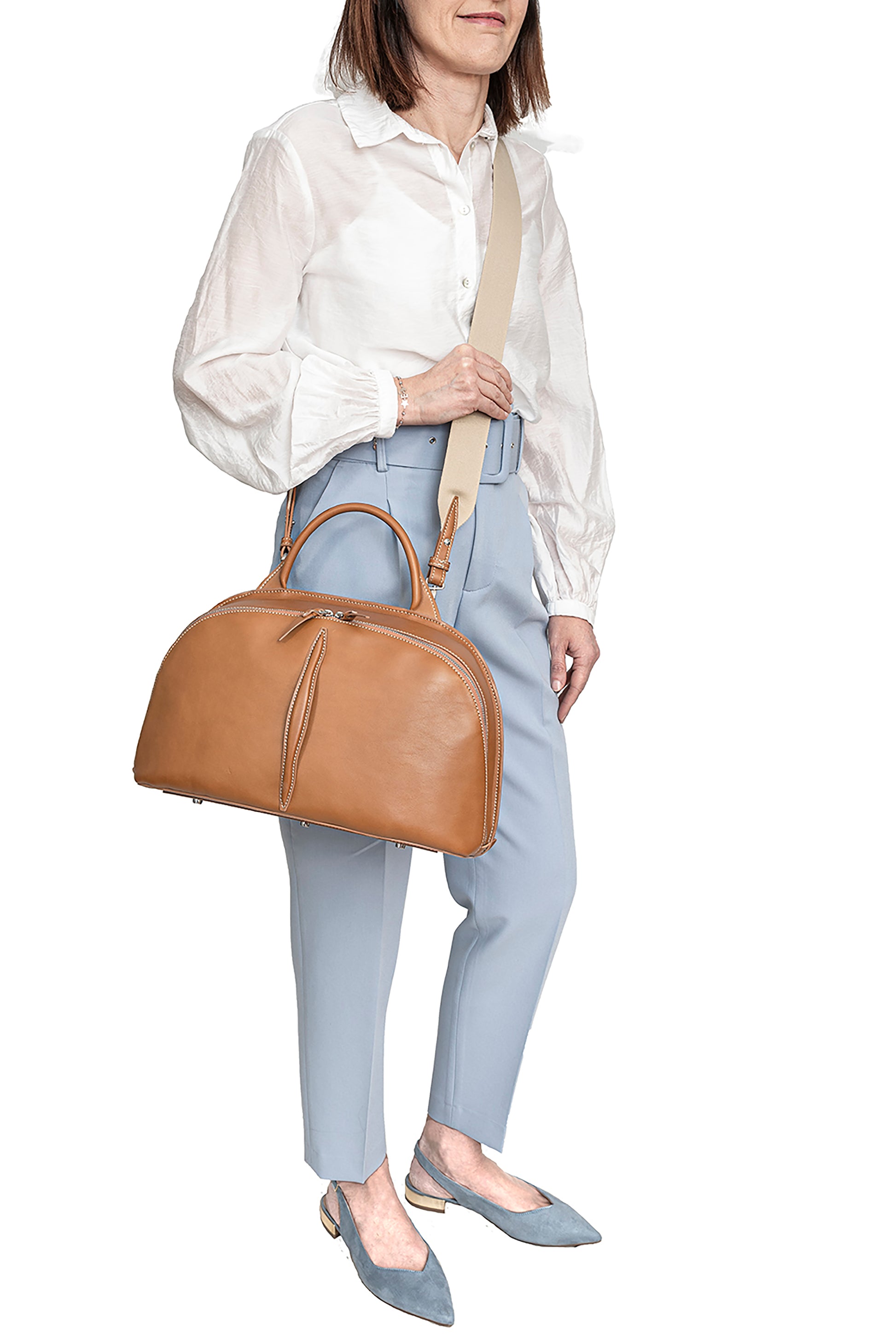 7756 Luna is a top handle bag made of moose printed calfskin leather crafted by Buti.