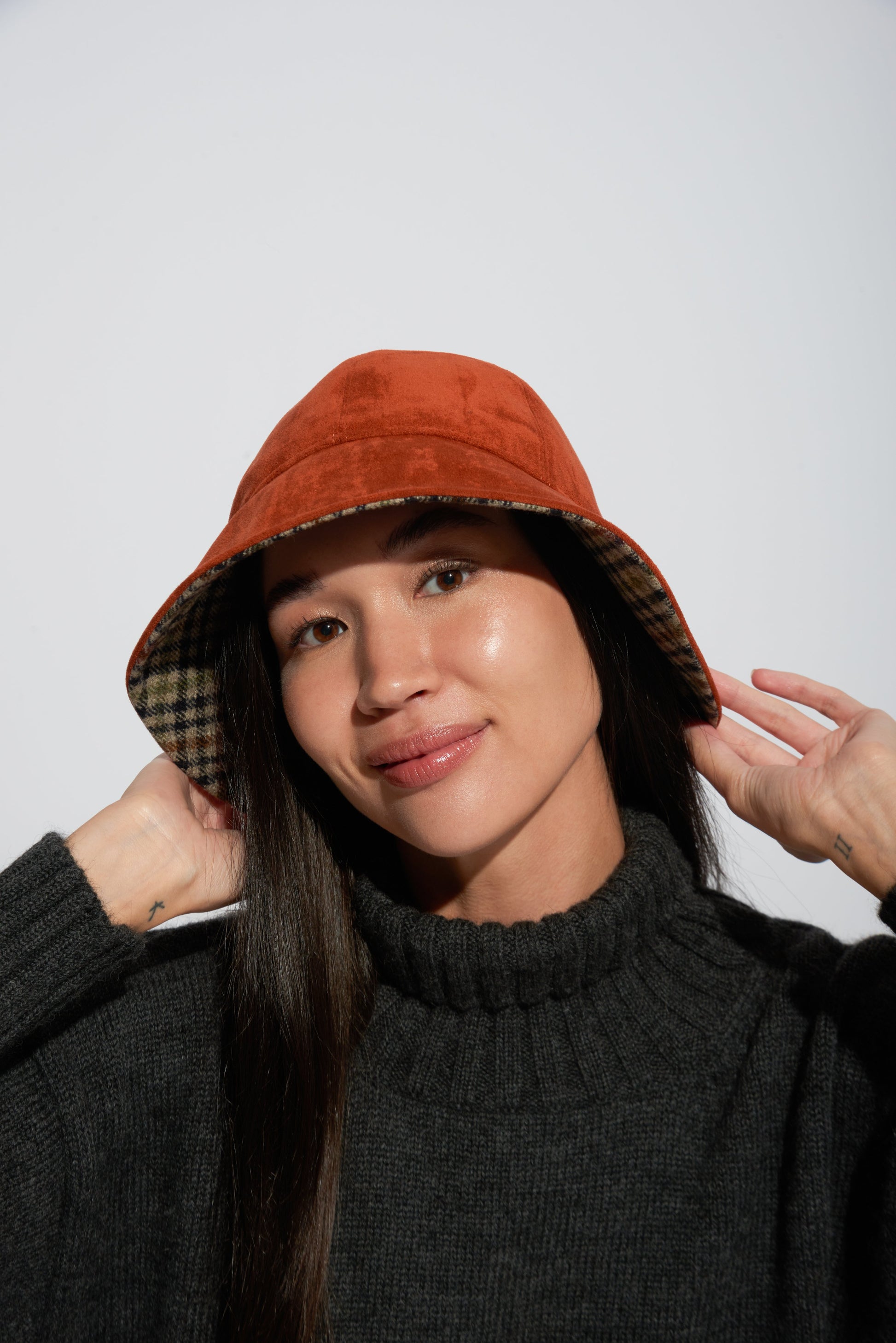 Blik is handcrafted by the historic weaving artisans of Doria 1905 in the Salento area of Apulia. This suede cloche underwire hat is super practical as it features a fabric underside boasting a sheperd's check pattern. Fold the brim for a chic contrast and wear Blik for a casually cool look.
