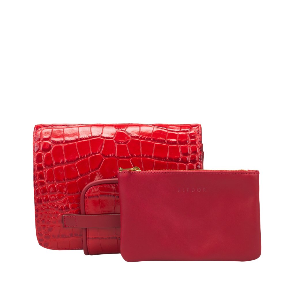 Brigida is a bag crafted by ELEDOR in Padua, Veneto. Made of croc-embossed bovine leather, this clutch bag comes with multiple internal pockets and an attachable leather strap. Boasting a detachable interior zipper compartment, Brigida is a functional yet fashionable clutch.