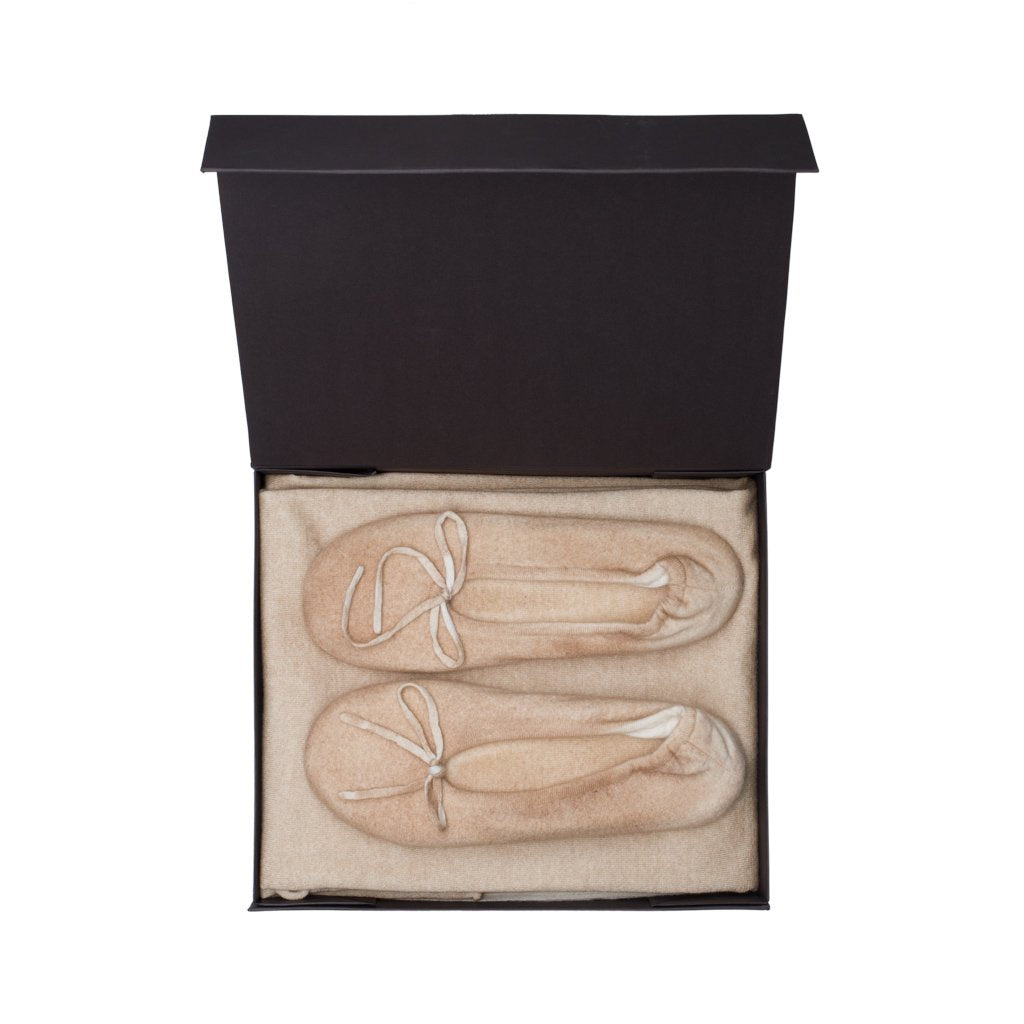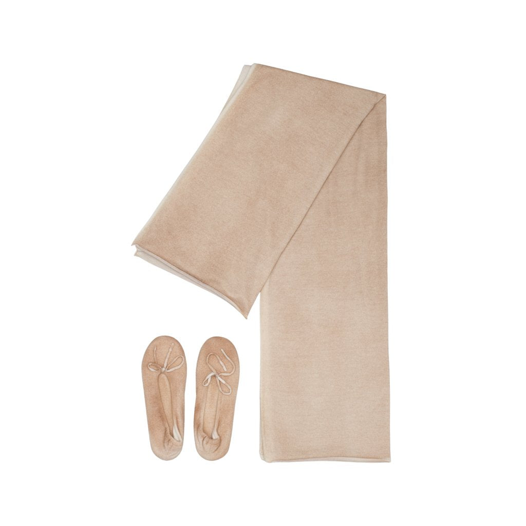 Cape is a travel set of matching cashmere slippers and knitted stole handmade by Ama Pure in Carpi, Emilia-Romagna. Made with 18-gauge cashmere, both slippers and stole are luxuriously soft and ultra-comfortable.