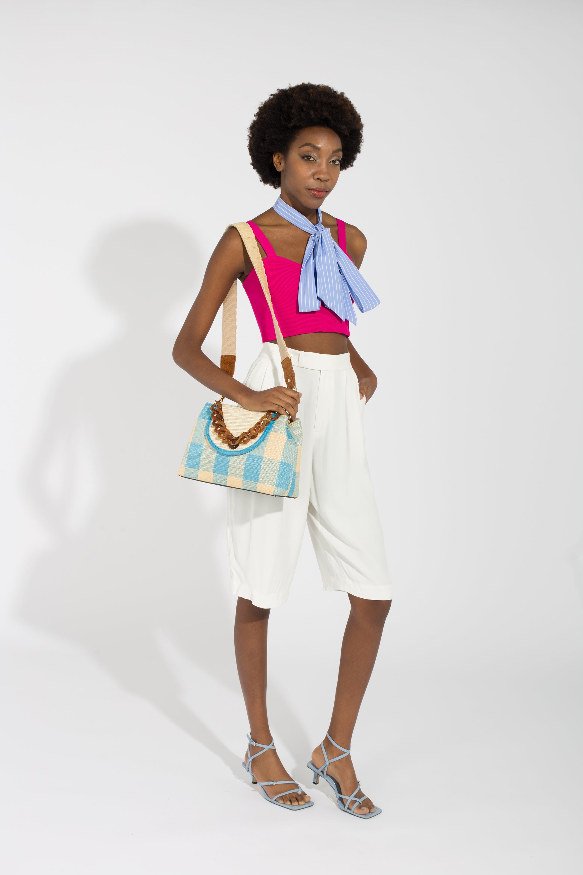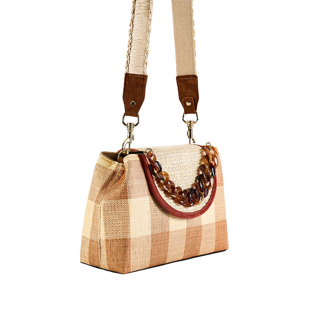 Cayman Color is a crossbody bag made in jacquard raffia in the workshop of Viamailbag in Tuscany.