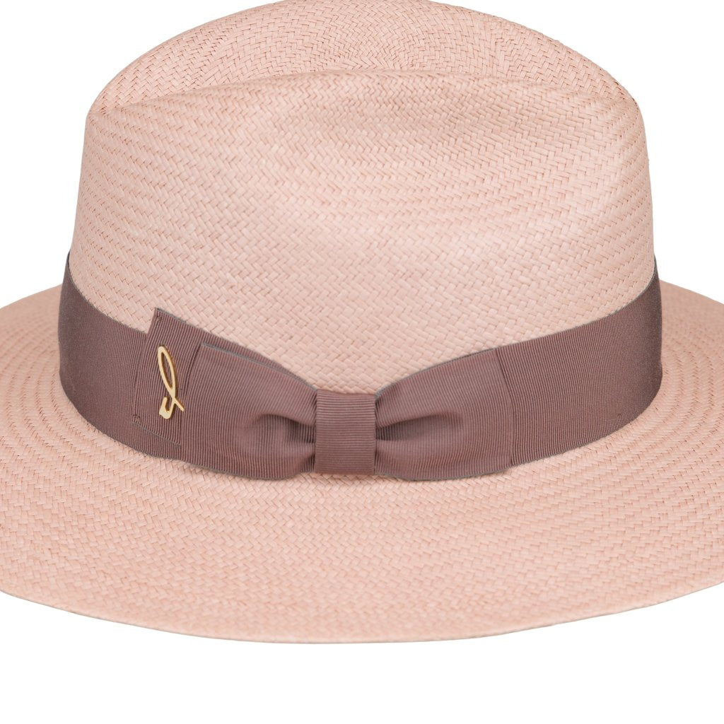 Dalida Sun is handcrafted by the historic weaving artisans of Doria 1905 in the Salento area of Apulia. This femininely fun fedora is made of Panama Cuenca, a highly sought-after material obtained from the leaves of the Carludovica plant and woven in Ecuador. Dalida Sun features a grosgrain belt decorated with a bow and gold-toned brass D logo, rendering it a fabulous summer accessory.