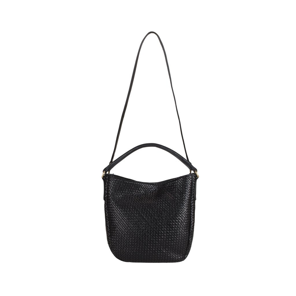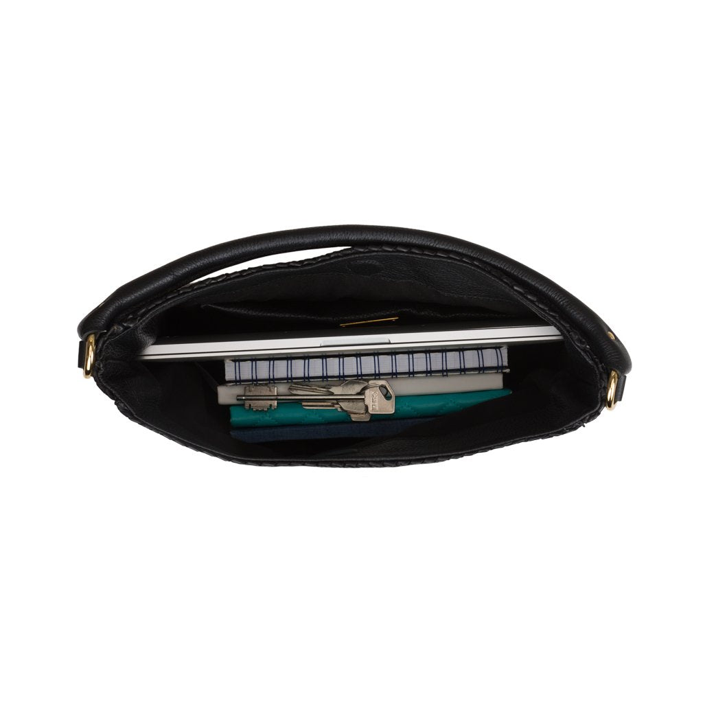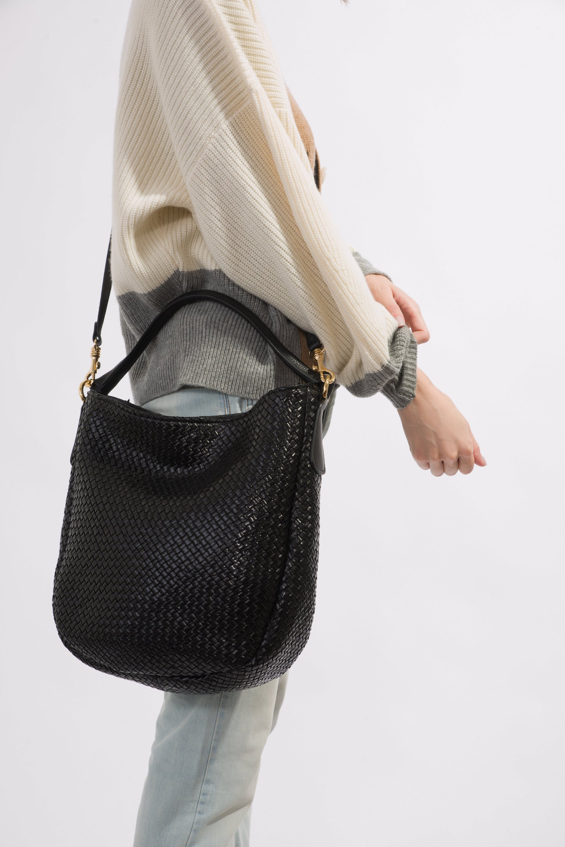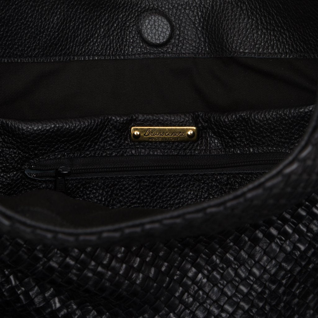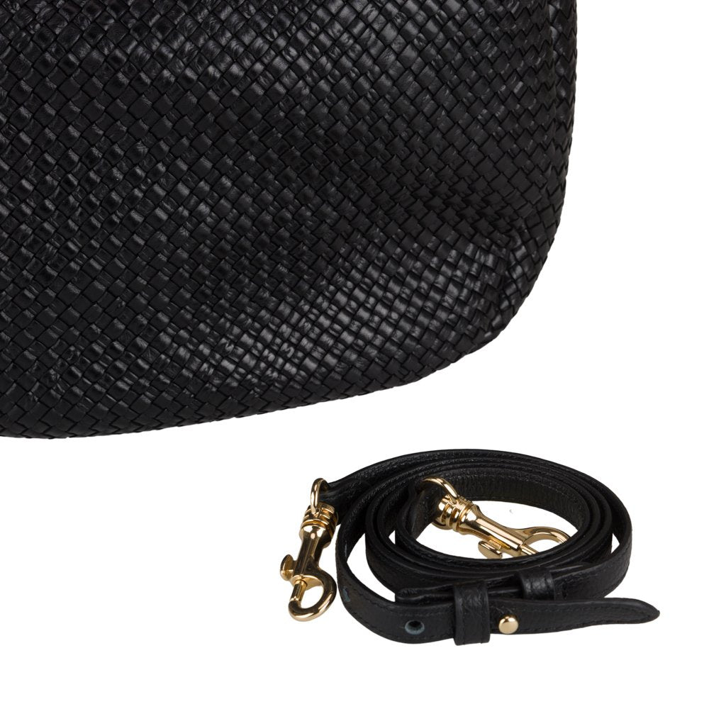 Daniella is a hobo bag crafted by the expert artisans of Brunocenere in Alassio, Liguria. This gorgeous bag is crafted from both woven calfskin and Vachetta leather, lending to a buttery soft and ultra-smooth feel. With its slouchy silhouette and gold-toned hardware, Daniella is the perfect accessory for a casual chic dress code. Attach the strap to transform the bag into a crossbody.