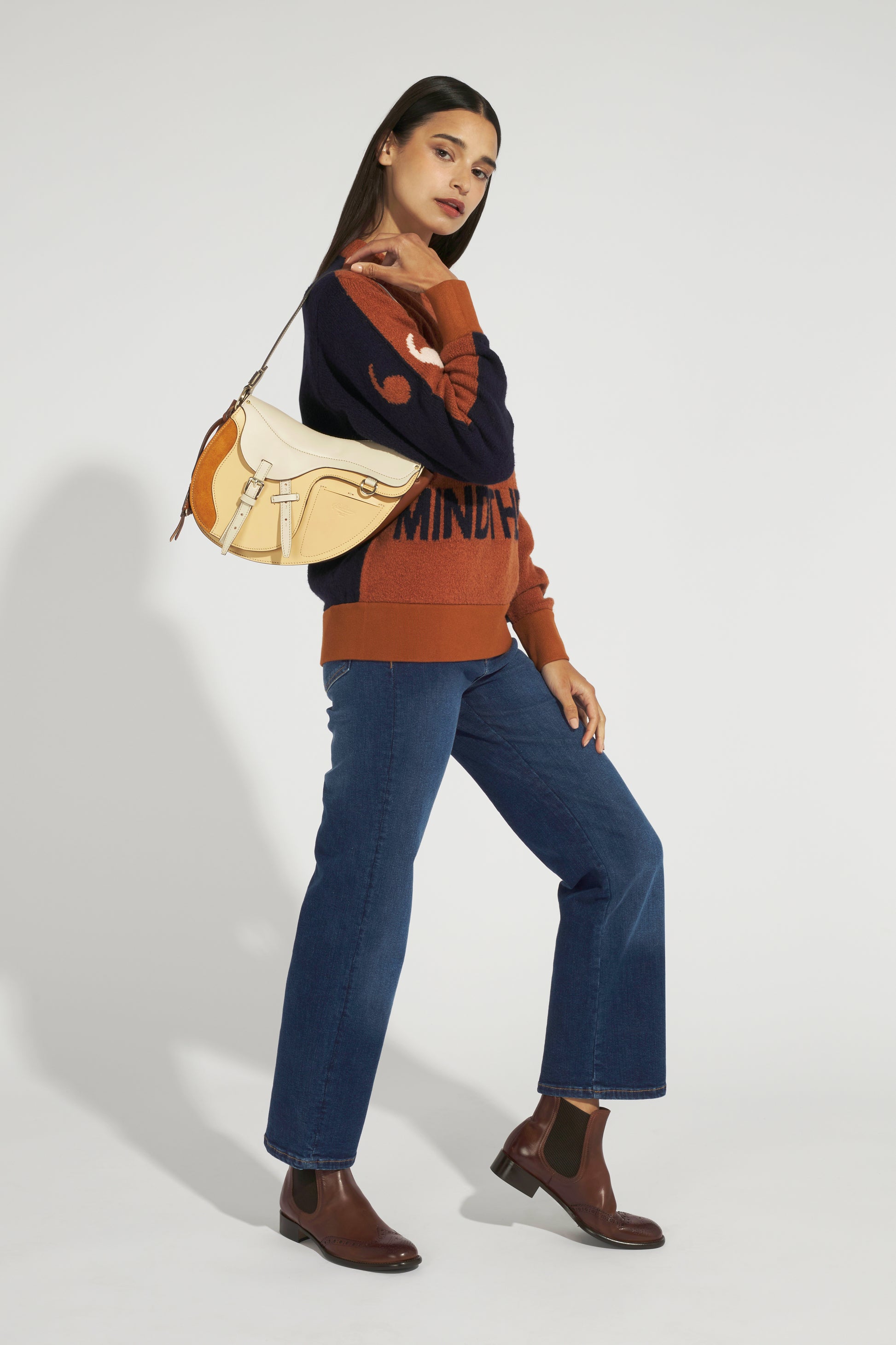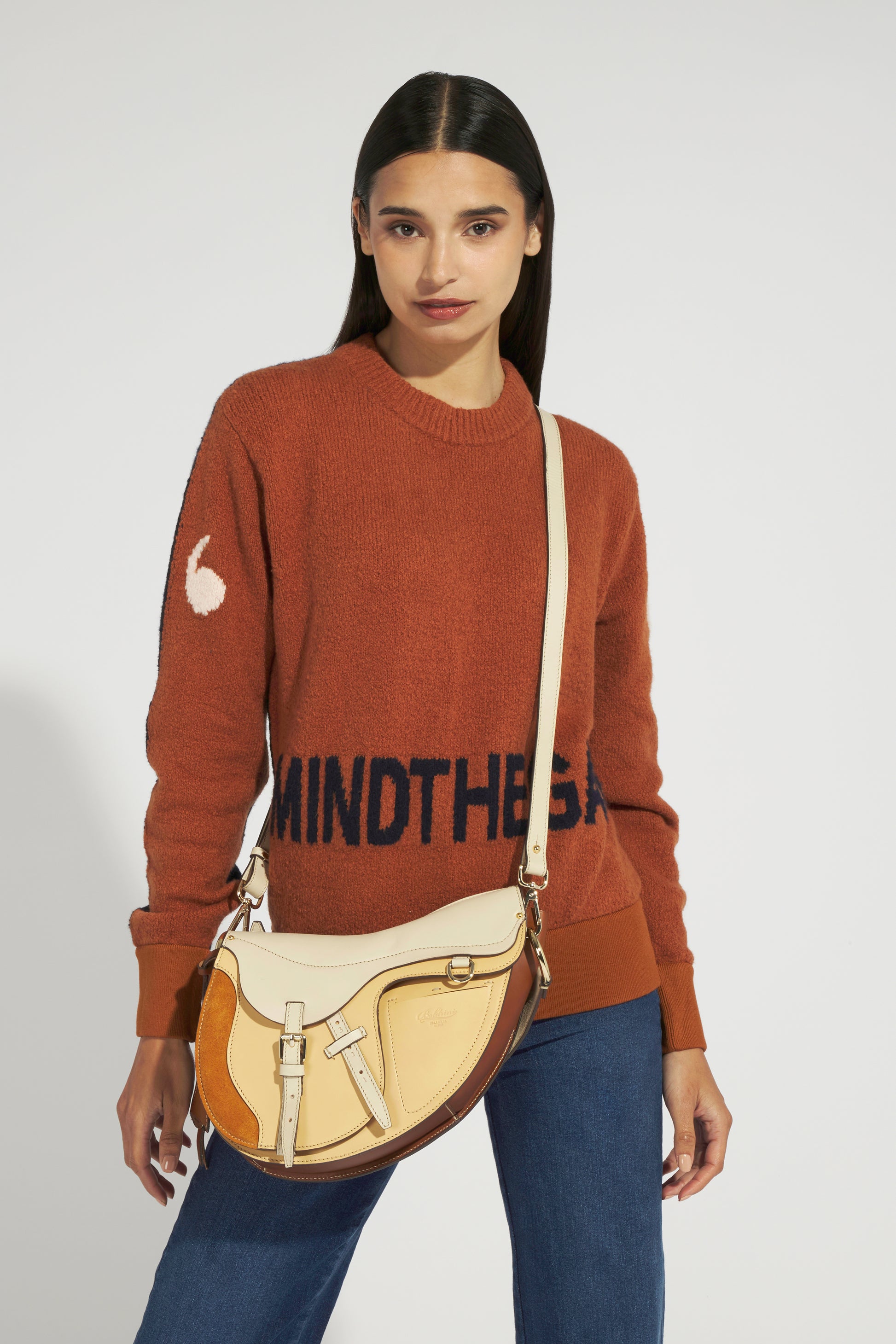 Edra is a shoulder bag crafted by Boldrini Selleria near Pistoia, Tuscany. It is crafted from Vachetta leather into an elegant saddle-shaped silhouette in three tones with a comfortable short strap. It is complete with a magnetic closure, a decorative exterior slip pocket, and a subtle embossed brand logo on the front. The detachable strap adds versatility to this unique piece. Its elegant curves, sleek details, and gold-toned hardware render Edra an exquisite shoulder or crossbody bag option which slips beautifully into your forever edit.
