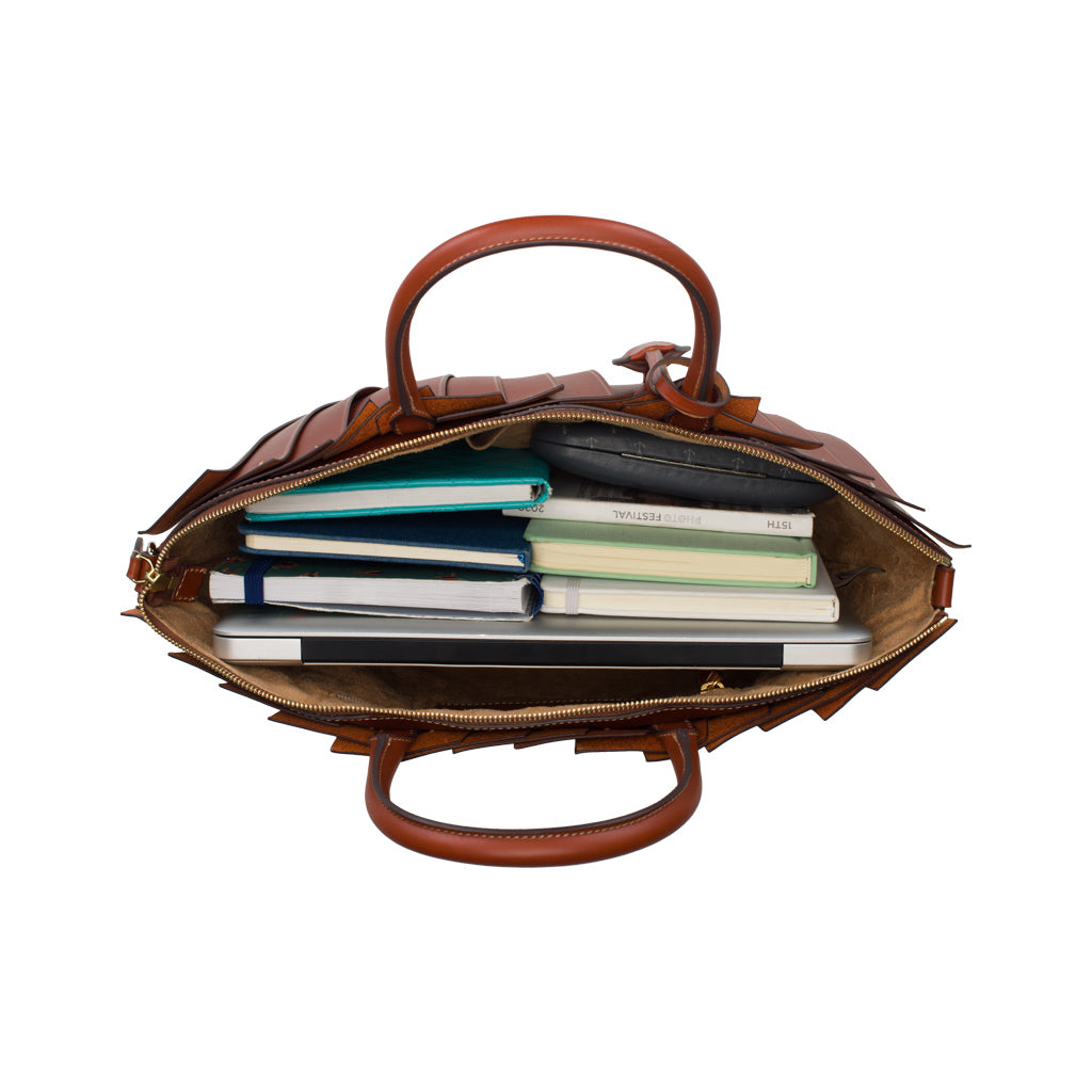 Ermione is a tote bag crafted by Boldrini Selleria. Made of Vachetta leather and featuring a detachable adjustable shoulder strap.