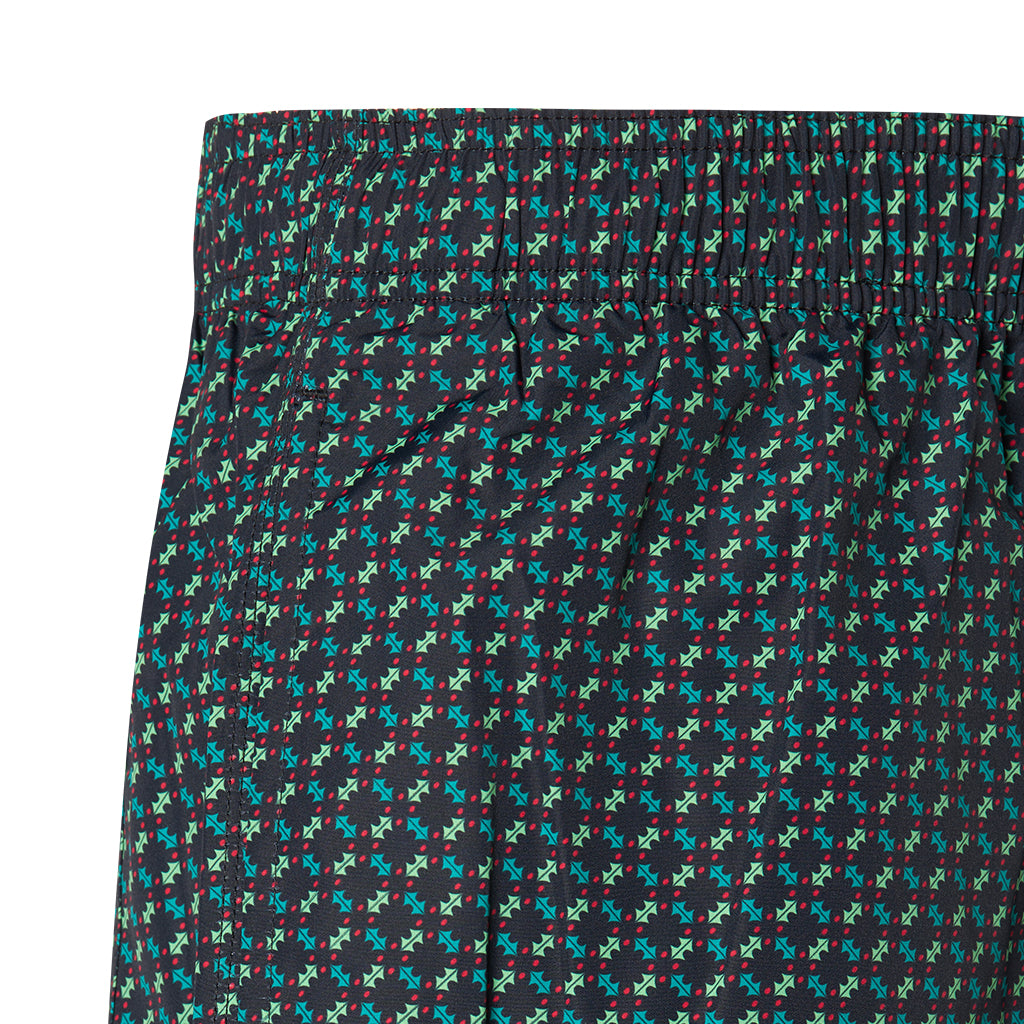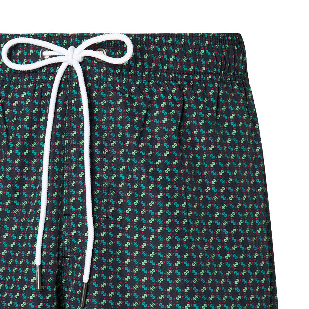 Fantasia is a pair of swim shorts crafted by Nick Bronson. These drawstring shorts are made of 100% polyester, rendering them both soft and long-lasting. With its playful pattern and deep green color, Fantasia will become your go-to swimsuit for the summer.