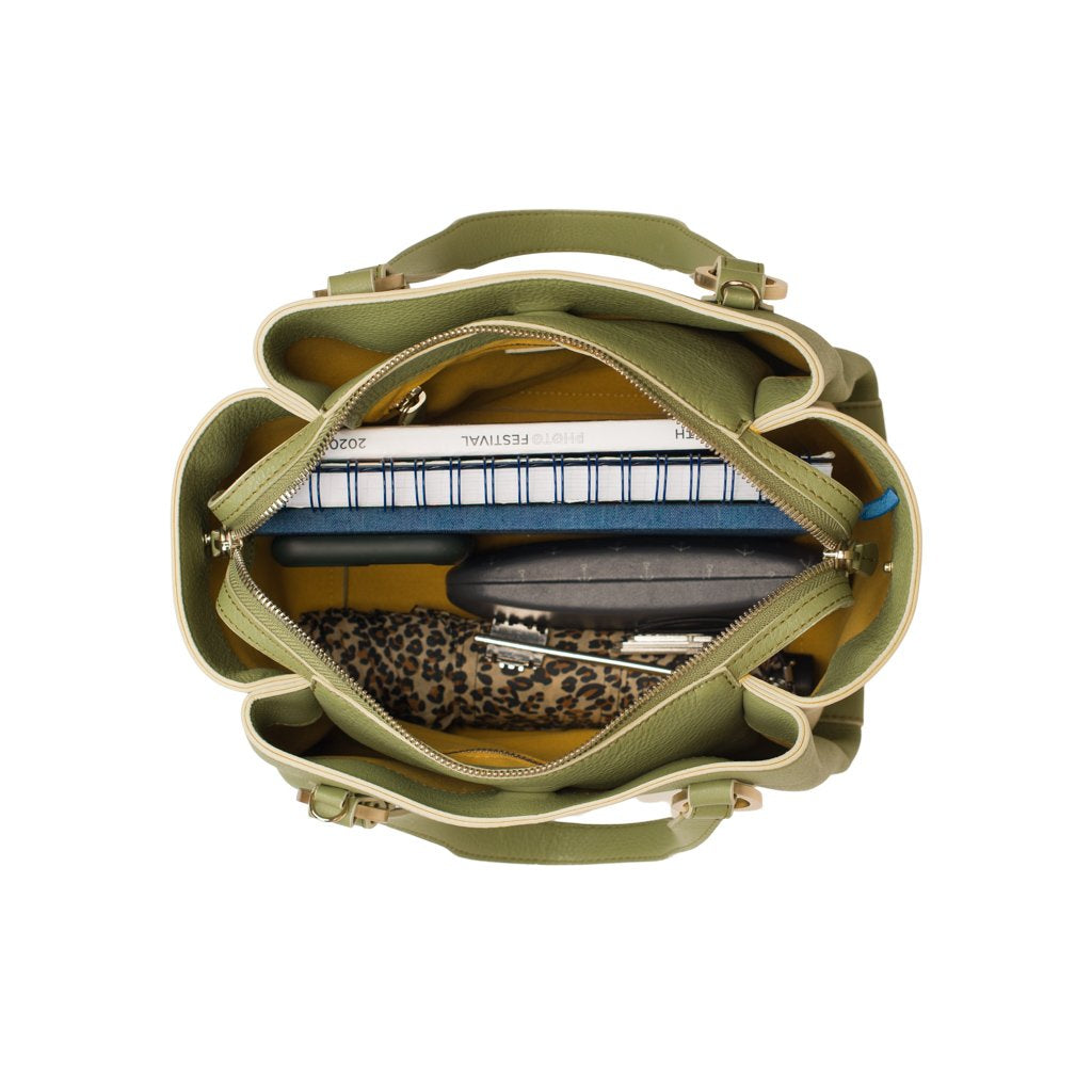 Fleur is a tote bag crafted by Ireri. Made of soft calfskin leather, its name suggests the actual shape of the object, exhibiting soft lines and multiple compartments which, if seen from above, remind of a floral silhouette. The inside, in a bright suede, is spacious and soft to touch. Two additional compartments, on both sides of the main body and closed through a hidden magnet, make it a very functional bag, also thanks to the detachable strap provided.