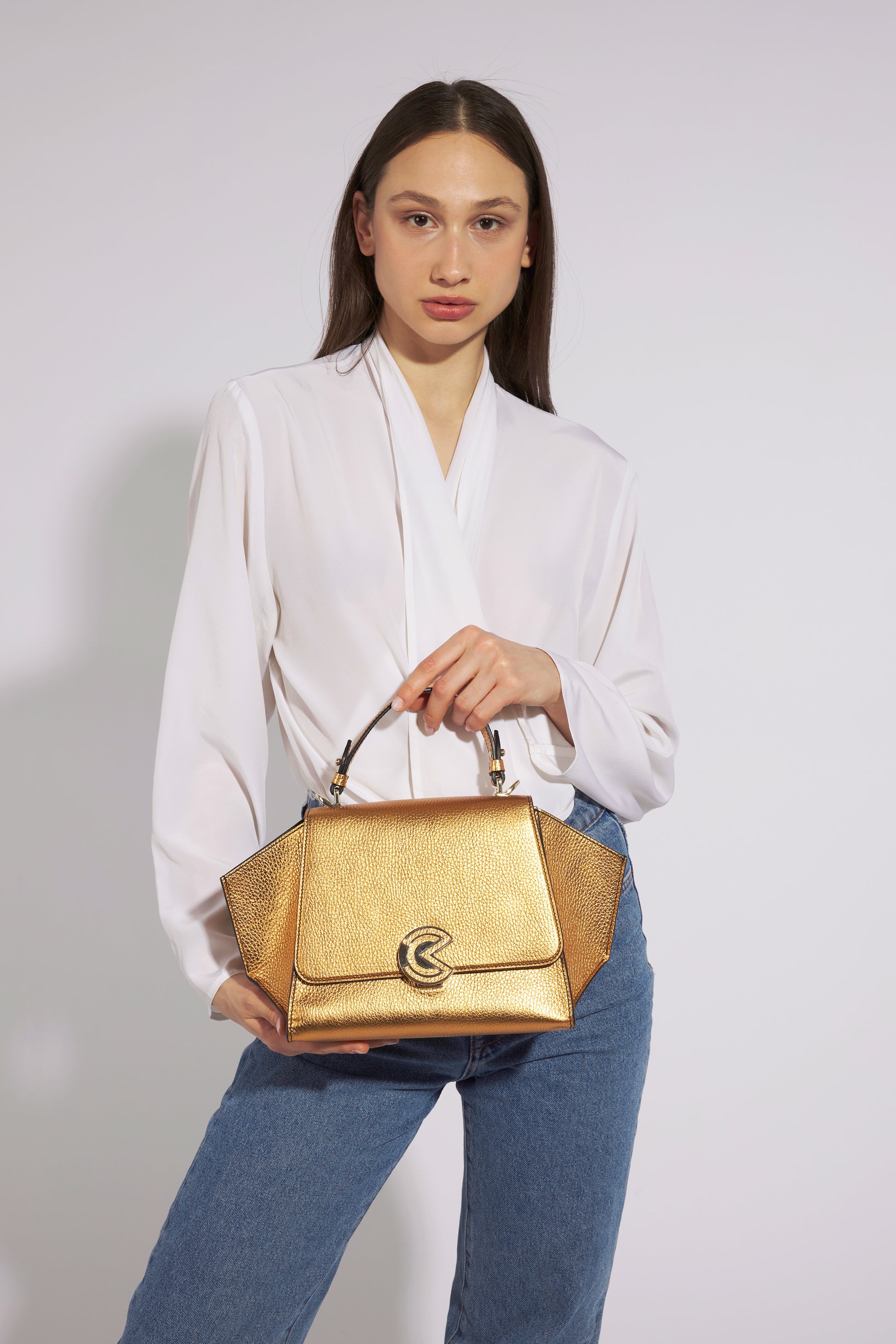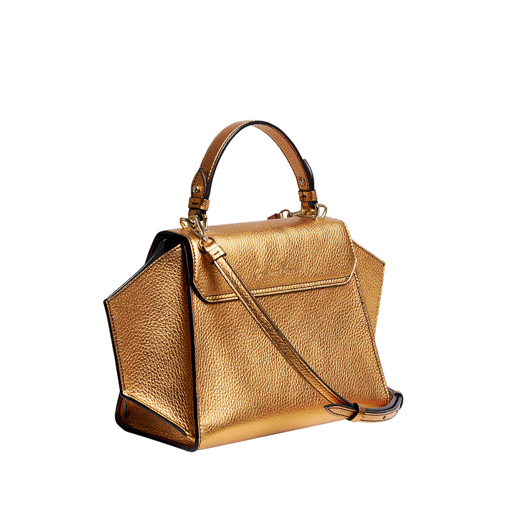 Gemma M Mini is a top handle bag made of leather crafted by Marcucci.