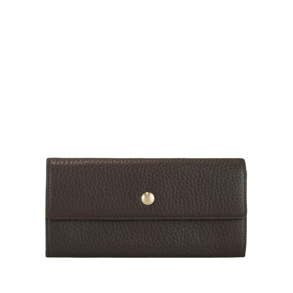 Giordana is a wallet crafted by Ireri. Made of soft calfskin leather, it features a classic long wallet design for holding all of your essentials securely. With a button closure that keeps your cash and cards within reach, you will never have to fumble for your necessities ever again.