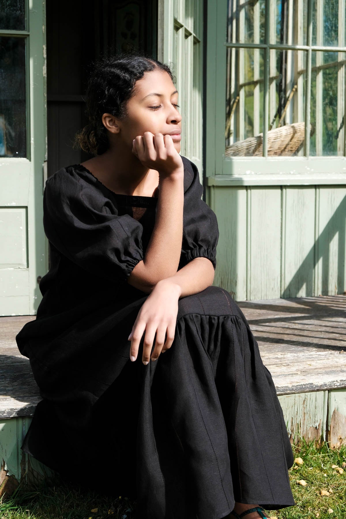 Giorgiana L2D19Bl is a dress made of linen crafted by Morpho + Luna.