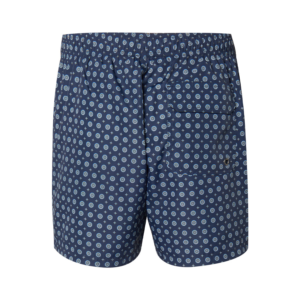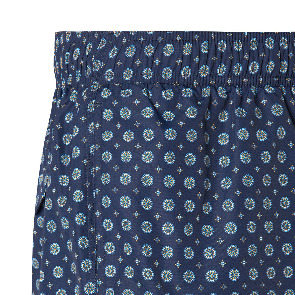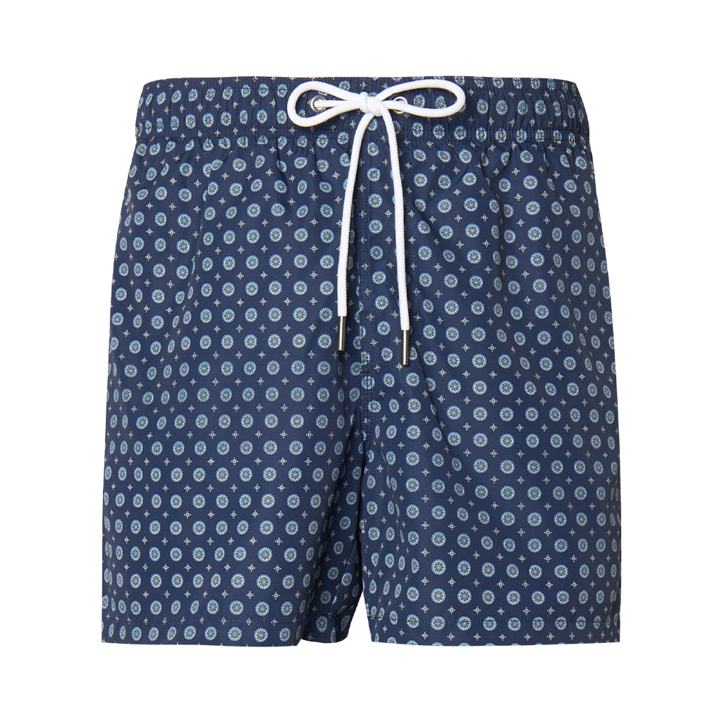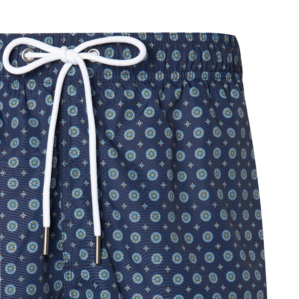 Gotico is a pair of swim shorts crafted by Nick Bronson. These drawstring shorts are made of 100% polyester, rendering them both soft and long-lasting. With its playful pattern and deep blue color, Gotico will become your go-to swimsuit for the summer.