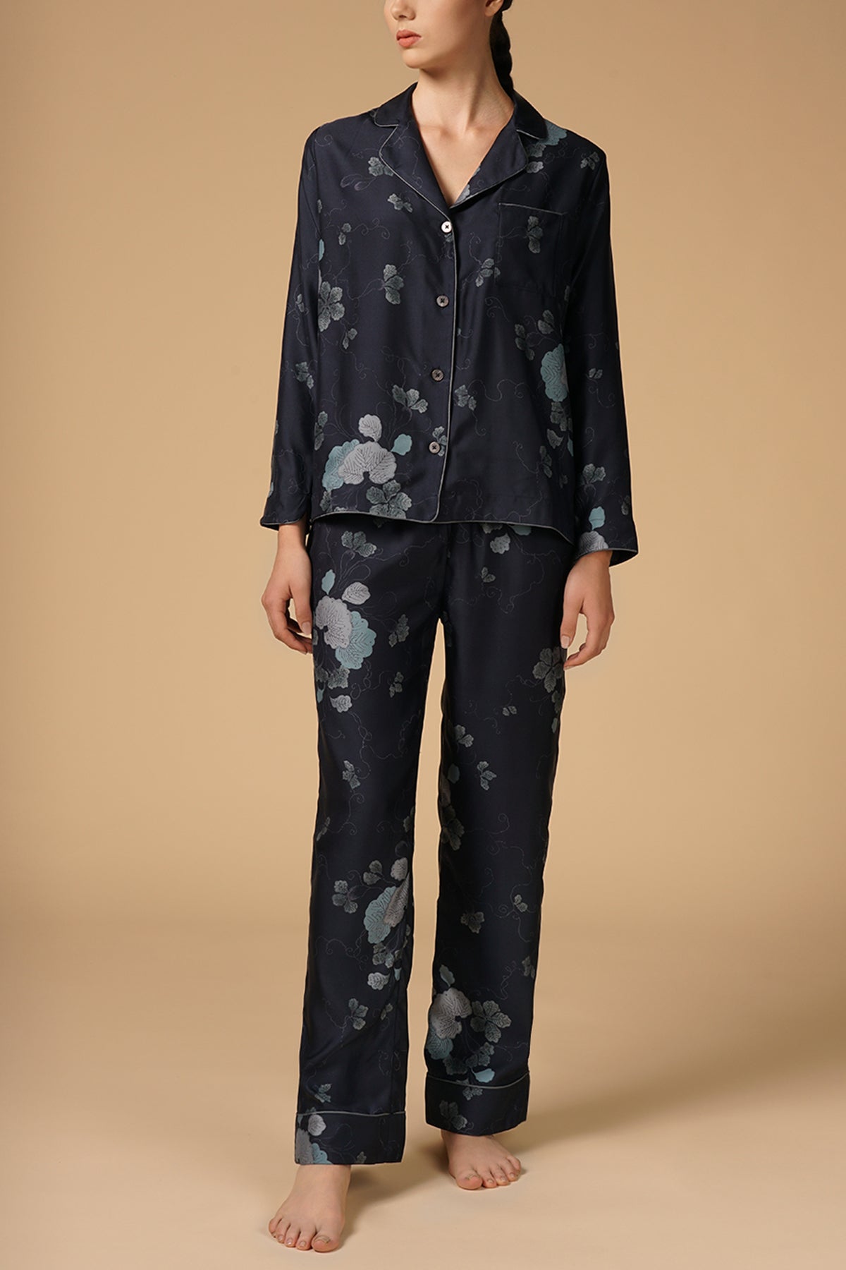 Ines S14P01Bl is a pajama made of silk crafted by Morpho + Luna.