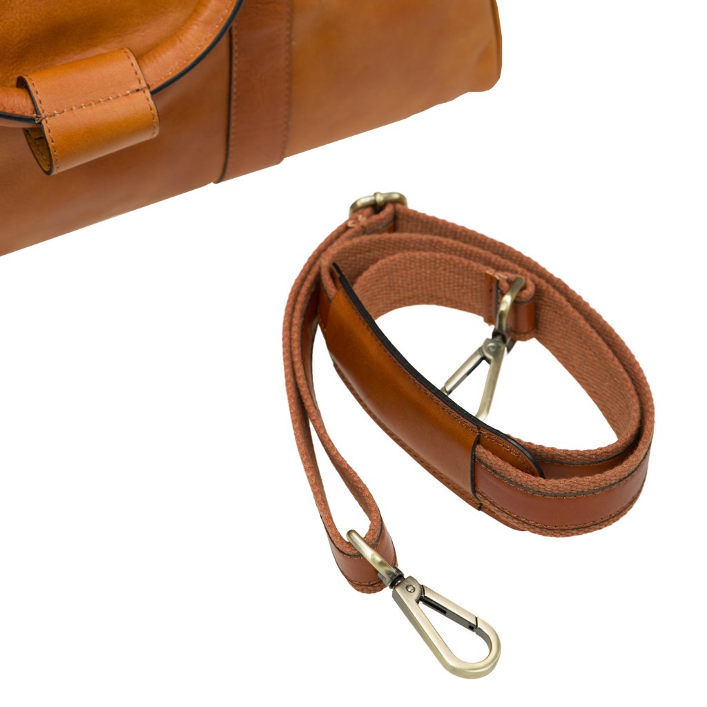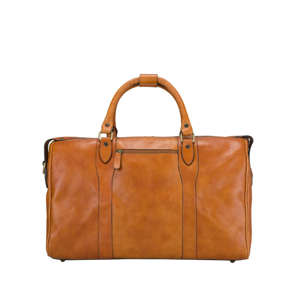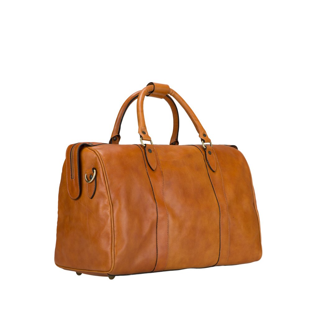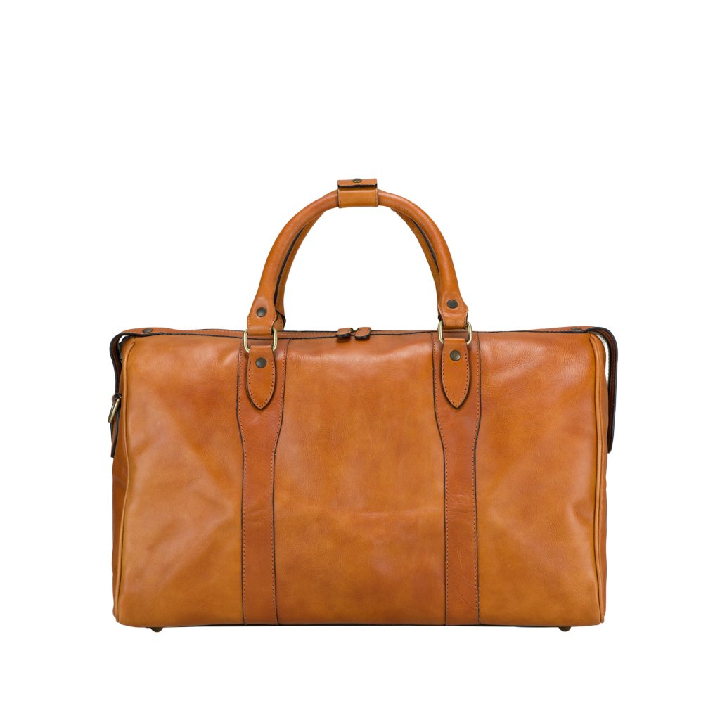 Ismaele is a duffle bag crafted by Old Angler. Made of soft vachetta leather, Isamele immediately catches the eye, with a subtle design of overlaid quality leather with stitched leather bars. The leather tipped zipper serves to safeguard your items while also adding to the bag’s elegance and usability. A prime example of a practical yet stylish duffle bag.