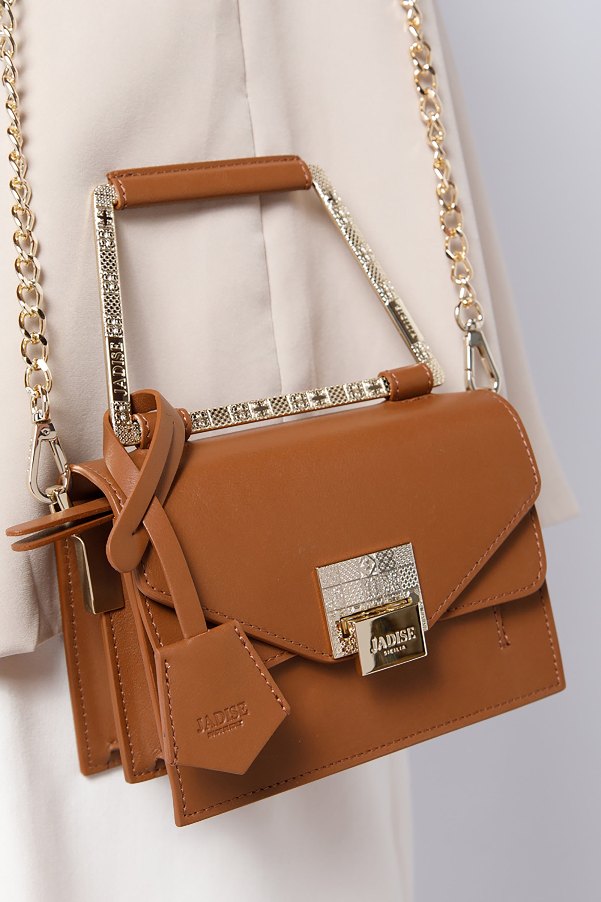 J081158 is a top handle bag made of leather crafted by Jadise. It features a detachable strap.