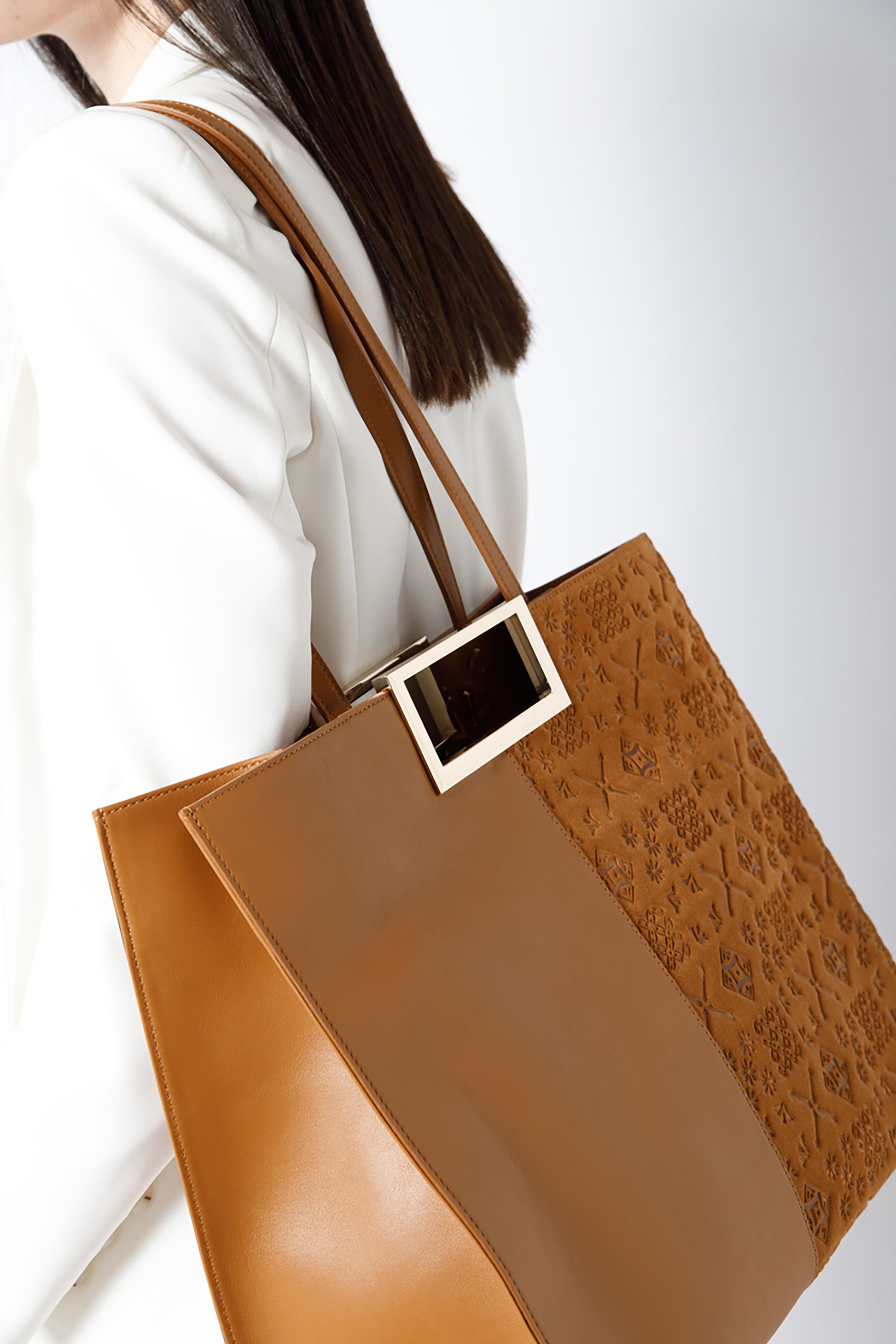 J131190 is a top handle bag made of leather crafted by Jadise.