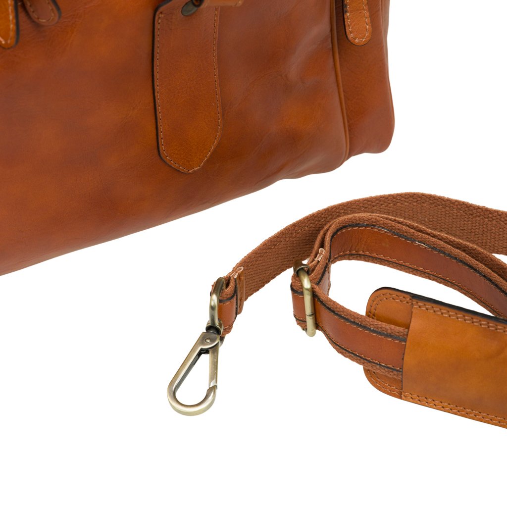 Jarno is a duffle bag crafted by Old Angler. Made of soft vachetta leather, Jarno is sophisticated enough for the office but rugged enough for the backcountry This classic weekender is divided into three main compartments, allowing for items to be placed comfortably, compact, and safe. Smooth, stylish and sturdy, it is the perfect option for school, work and everything in between.