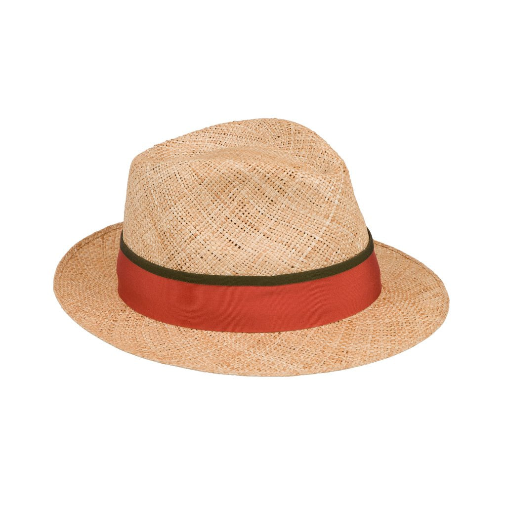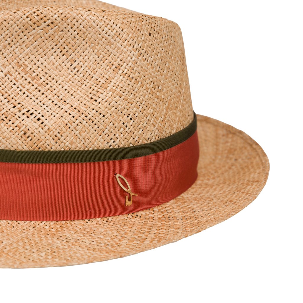 Joshi is handcrafted by the historic weaving artisans of Doria 1905 in the Salento area of Apulia. This hat is made of Baku straw, a very light material grown from the wild herbs found near the Azeri lakes. The Baku renders Joshi delicate and super lightweight, perfect for the hotter months. With a gold-toned brass D logo and red grosgrain ribbon, Joshi is an elegant addition to your summer wardrobe.