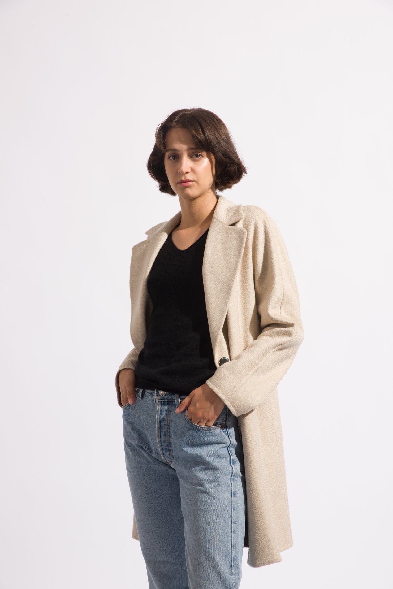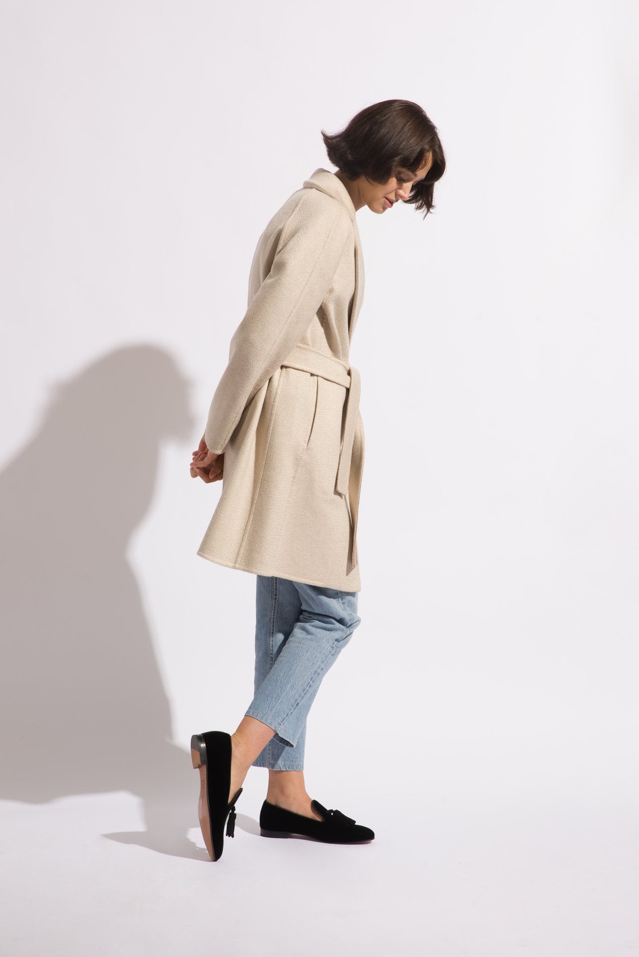 Karia is a winter coat crafted by Caban. Made of luxurious cashmere for long-lasting quality and comfort, is the perfect piece to stay cosy and warm during the cooler months of the year. Classically styled with a wide collar and traditional waist belt, Karia will will perk up any look effortlessly.