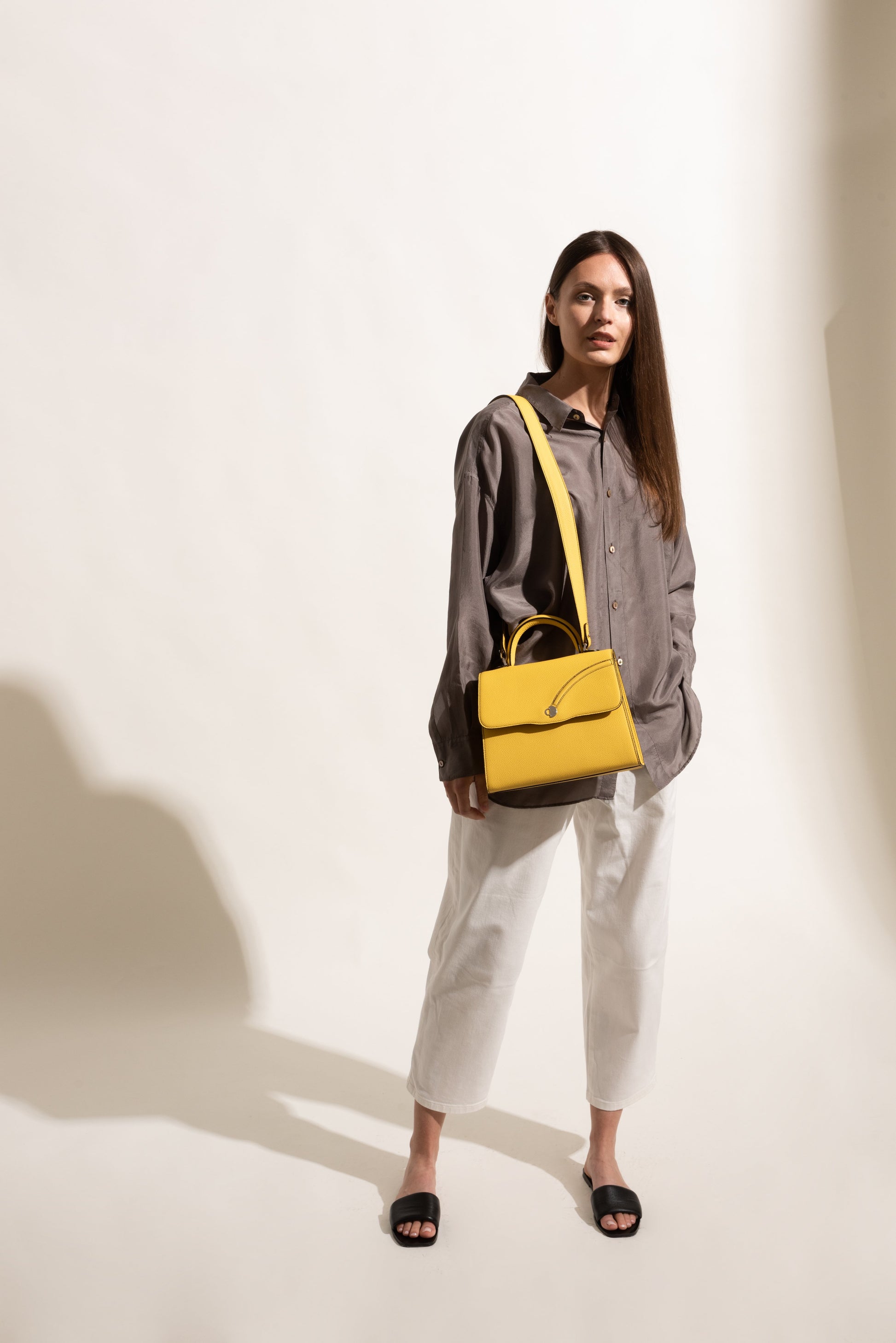 Milano Brera Rainbow is a top handle bag crafted by Chiara Daverio in Milan, Lombardy. Milano Brera Rainbow boasts a sturdy shape and practical design with 2 slip pockets. Its lightweight structure is thanks to innovative leather tanning and production techniques. Hold comfortably by the handle or attach the adjustable strap for a totally different look!