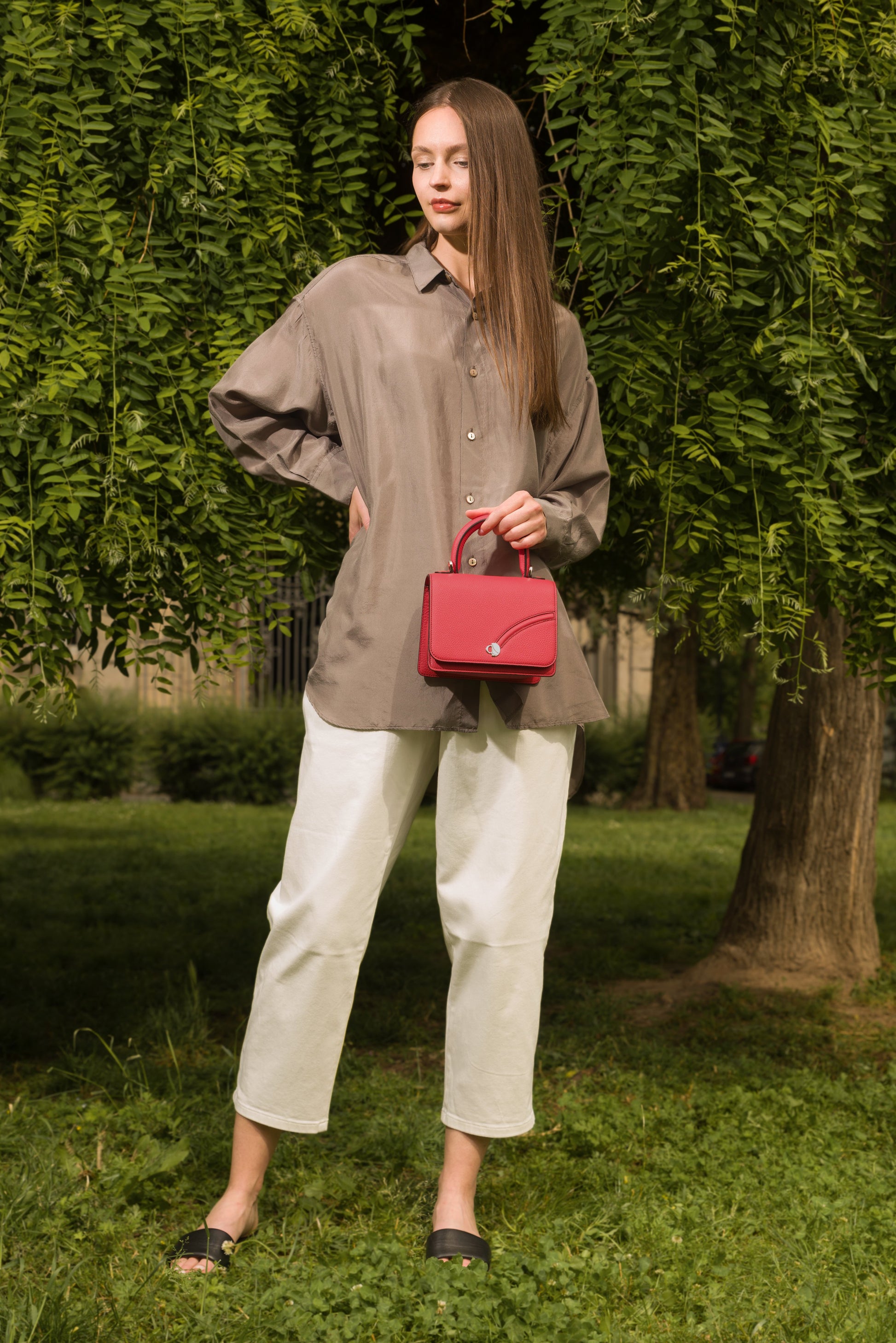 Mini Lady Rainbow is a top handle bag crafted by Chiara Daverio in Milan, Lombardy. The perfect miniature bag, Mini Lady Rainbow boasts a sturdy shape and practical design with 2 slip pockets. Its lightweight structure is thanks to innovative leather tanning and production techniques. Hold comfortably by the handle or attach the adjustable strap for a totally different look!