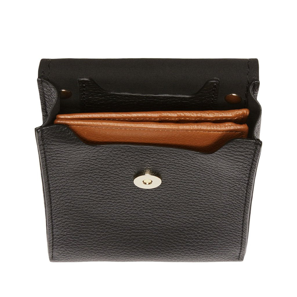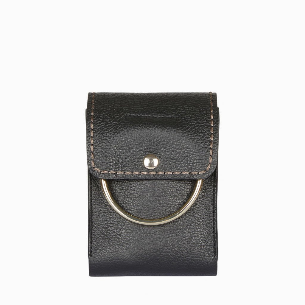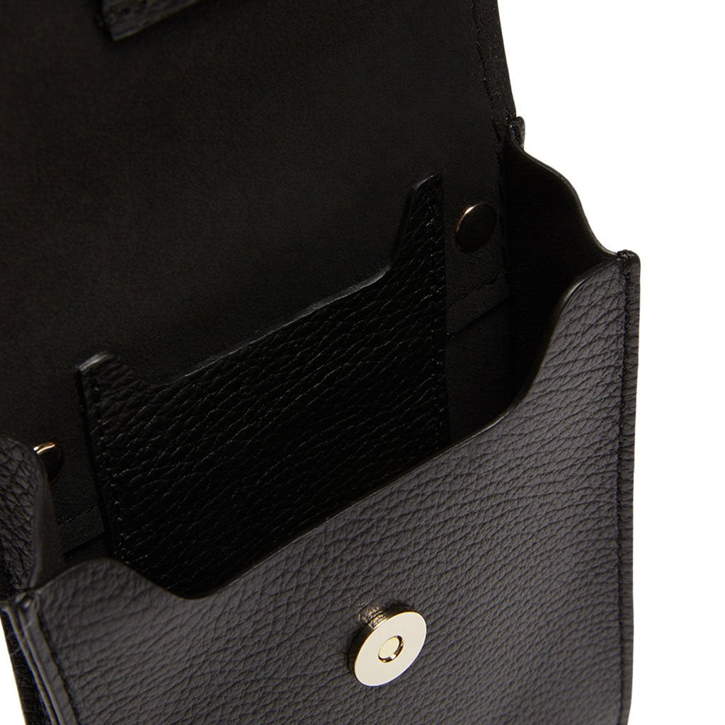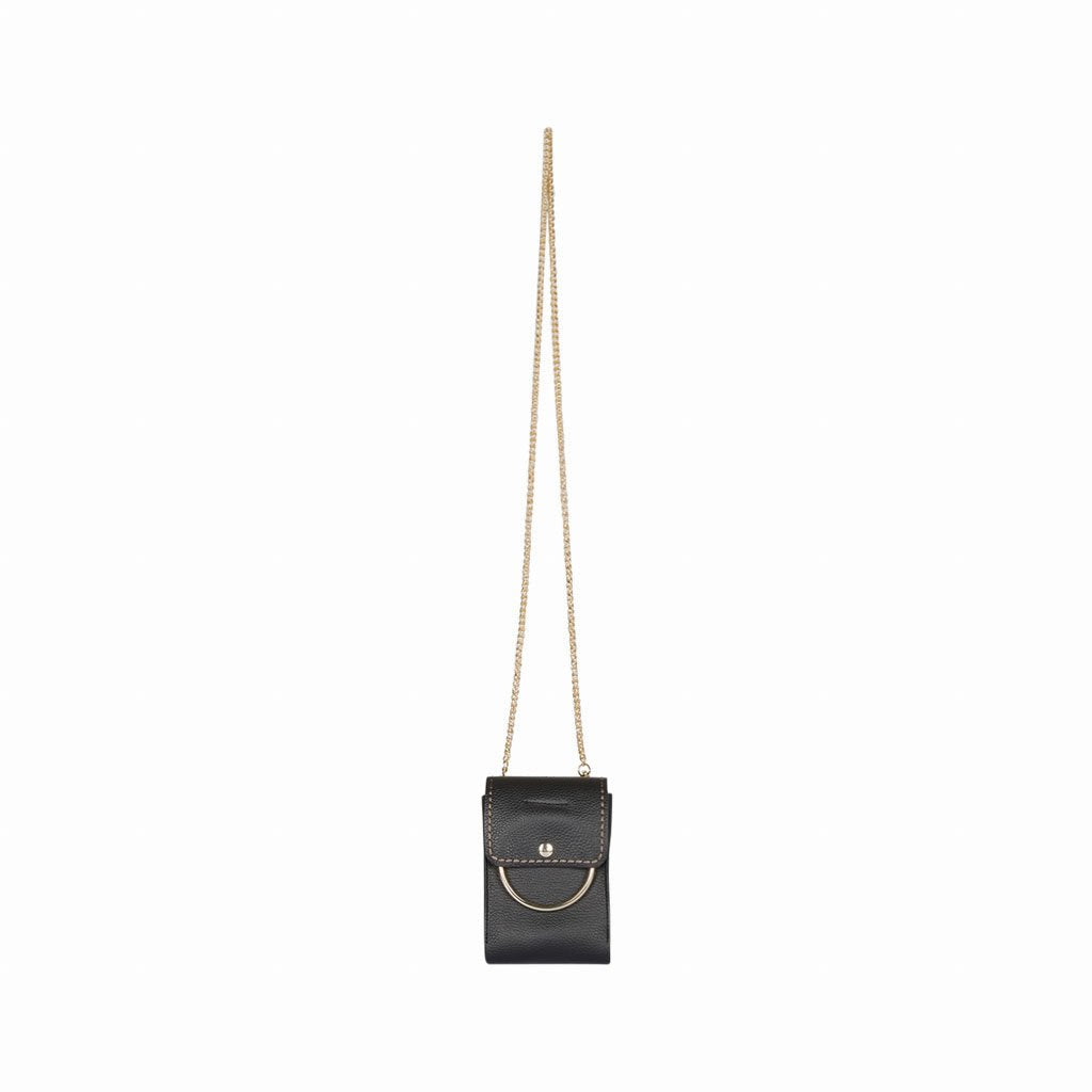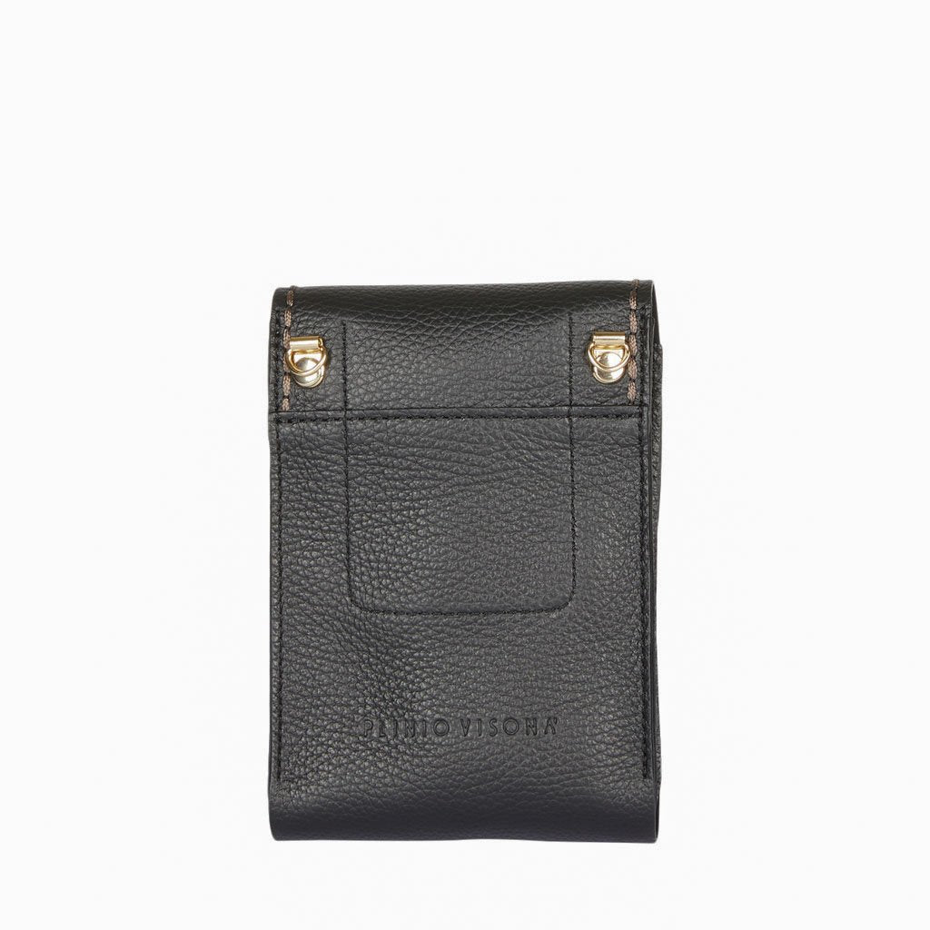 Miriana is a phone holder handmade in Vicenza by the expert artisans of Plinio Visonà. Made of calfskin leather, this holder has a fold-over design with a magnetic closure on the top to keep the phone secure and a detachable chain to wear it over your shoulder or around your neck. - 100% Made in Italy
