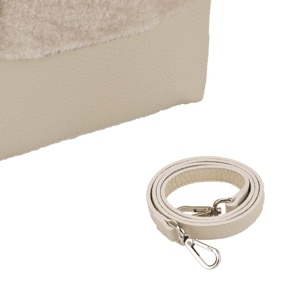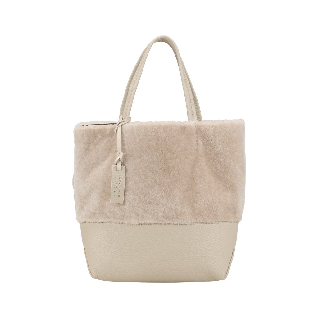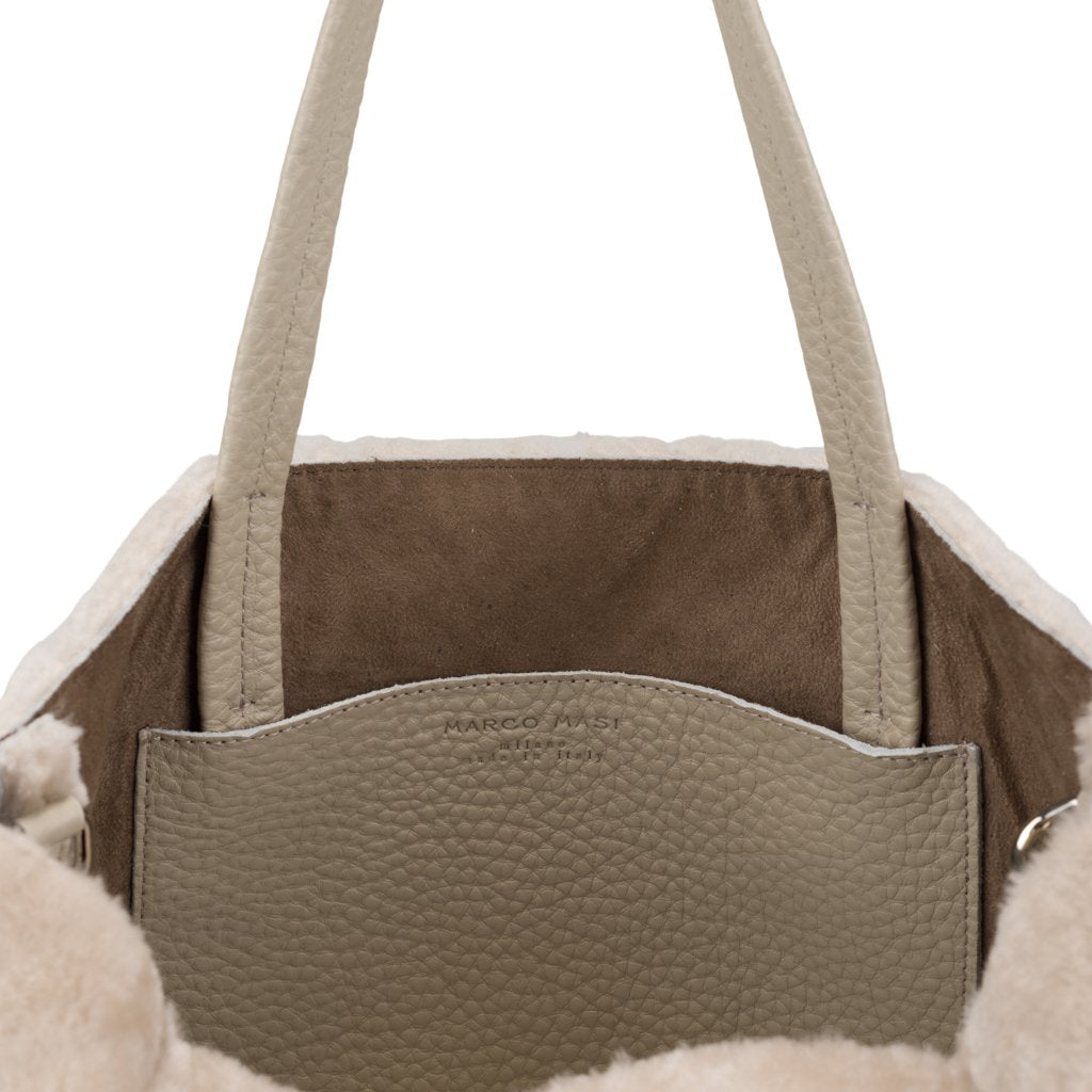 Noella is a tote bag crafted by Marco Masi in Milan, Lombardy. This tote is made of both sheepskin and calfskin leather, the ultimate cozy chic combo for your winter looks. To turn Noella into a shoulder bag, simply attach the included strap.