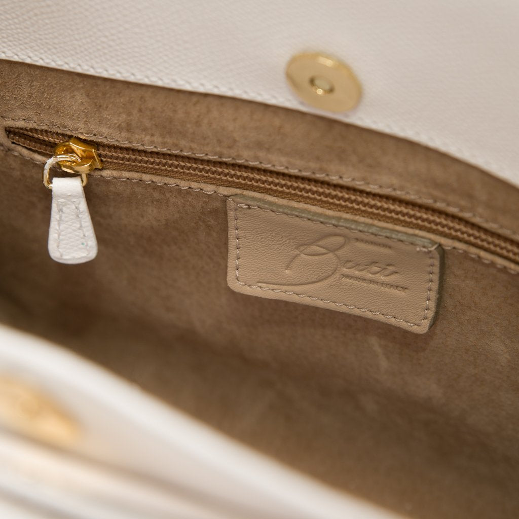 Odilia is a top handle bag crafted by the master artisans of Buti in Tuscany. This ultra-elegant bag is sturdy, yet chic and offers two small compartments. Perfect for both day or night, Odilia will be your new fashion staple!