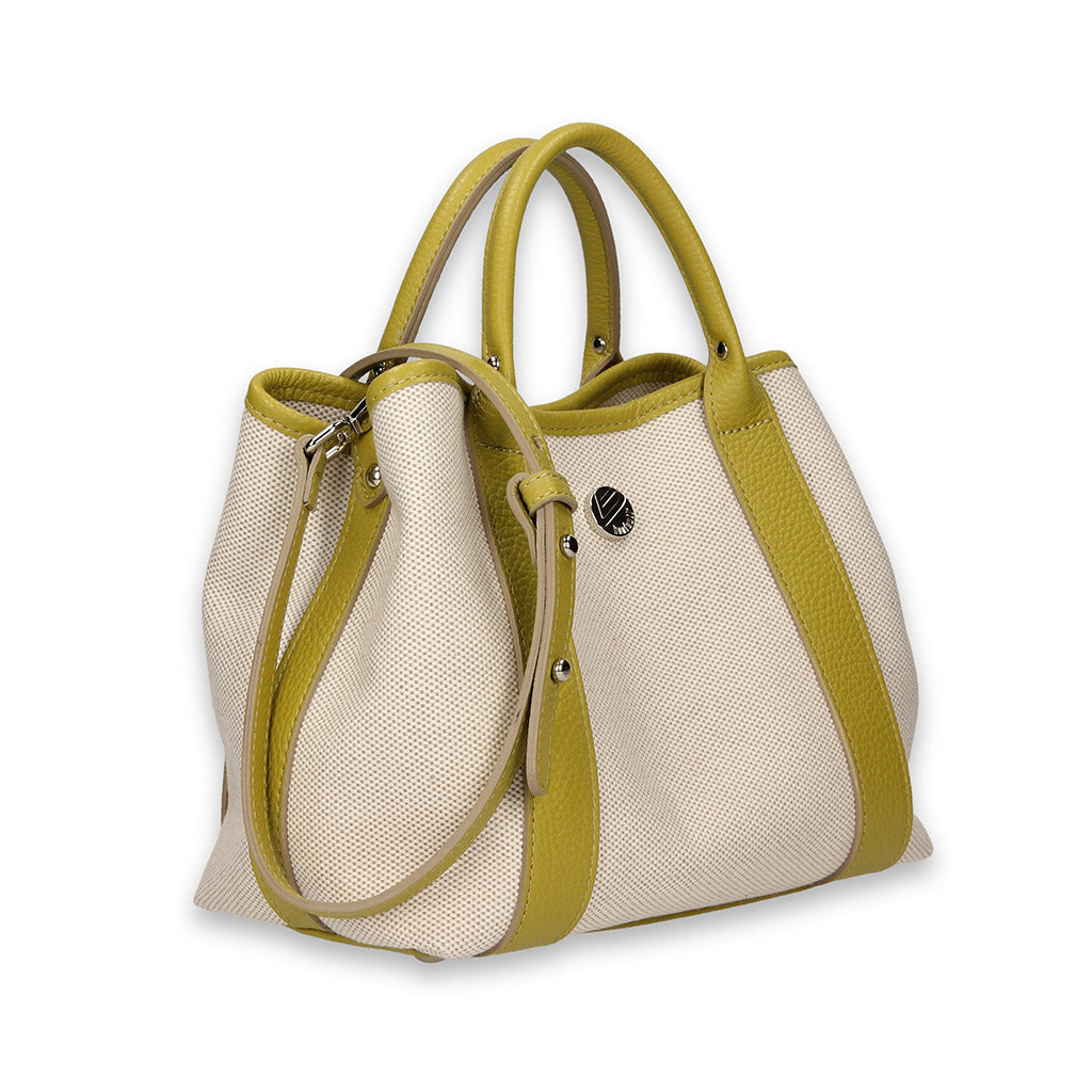 ONDINA B is a small flared 2 Way bag developed with the traditional Panama cotton canvas and calf leather trimmings.- 100% Made in Italy