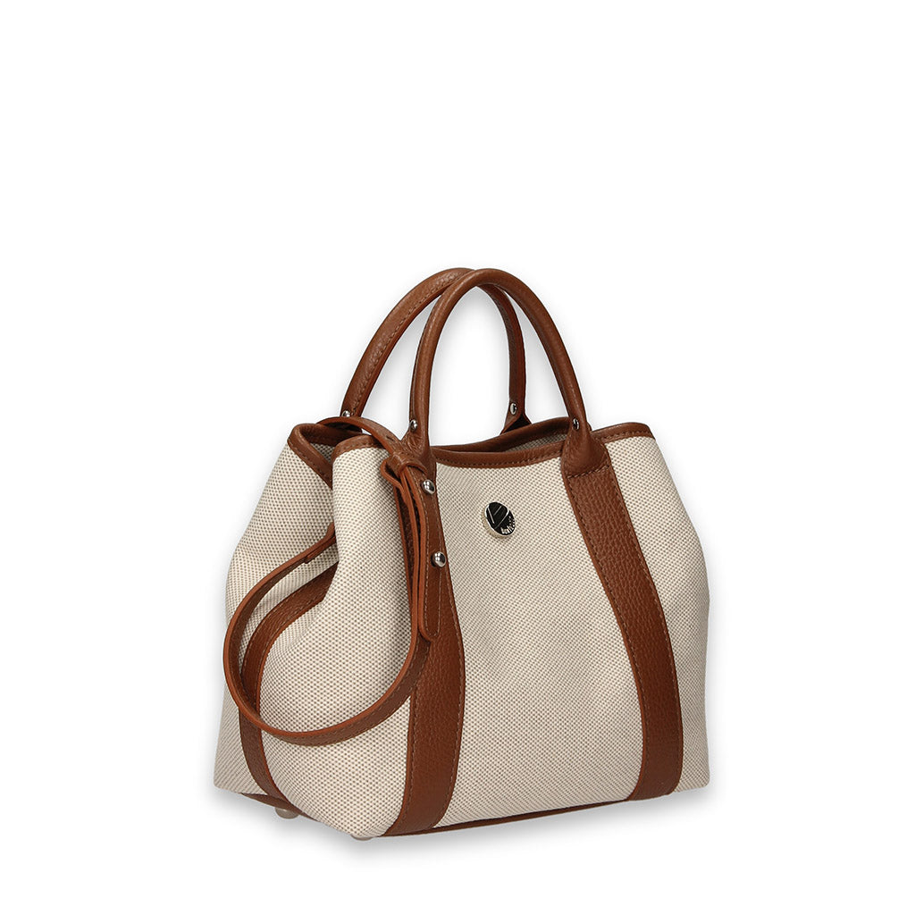 ONDINA B is a small flared 2 Way bag developed with the traditional Panama cotton canvas and calf leather trimmings.- 100% Made in Italy