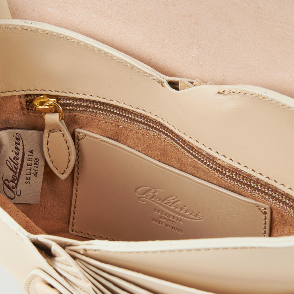 Operetta is a crossbody bag made of vegetable-tanned calfskin crafted by Boldrini.