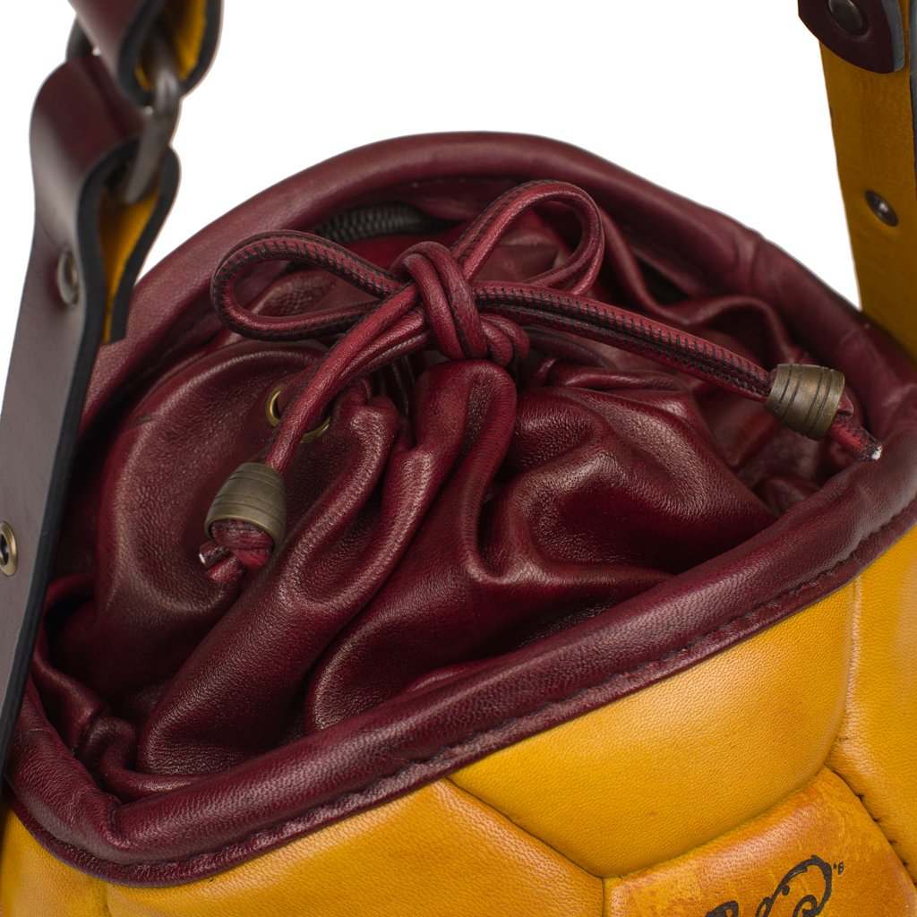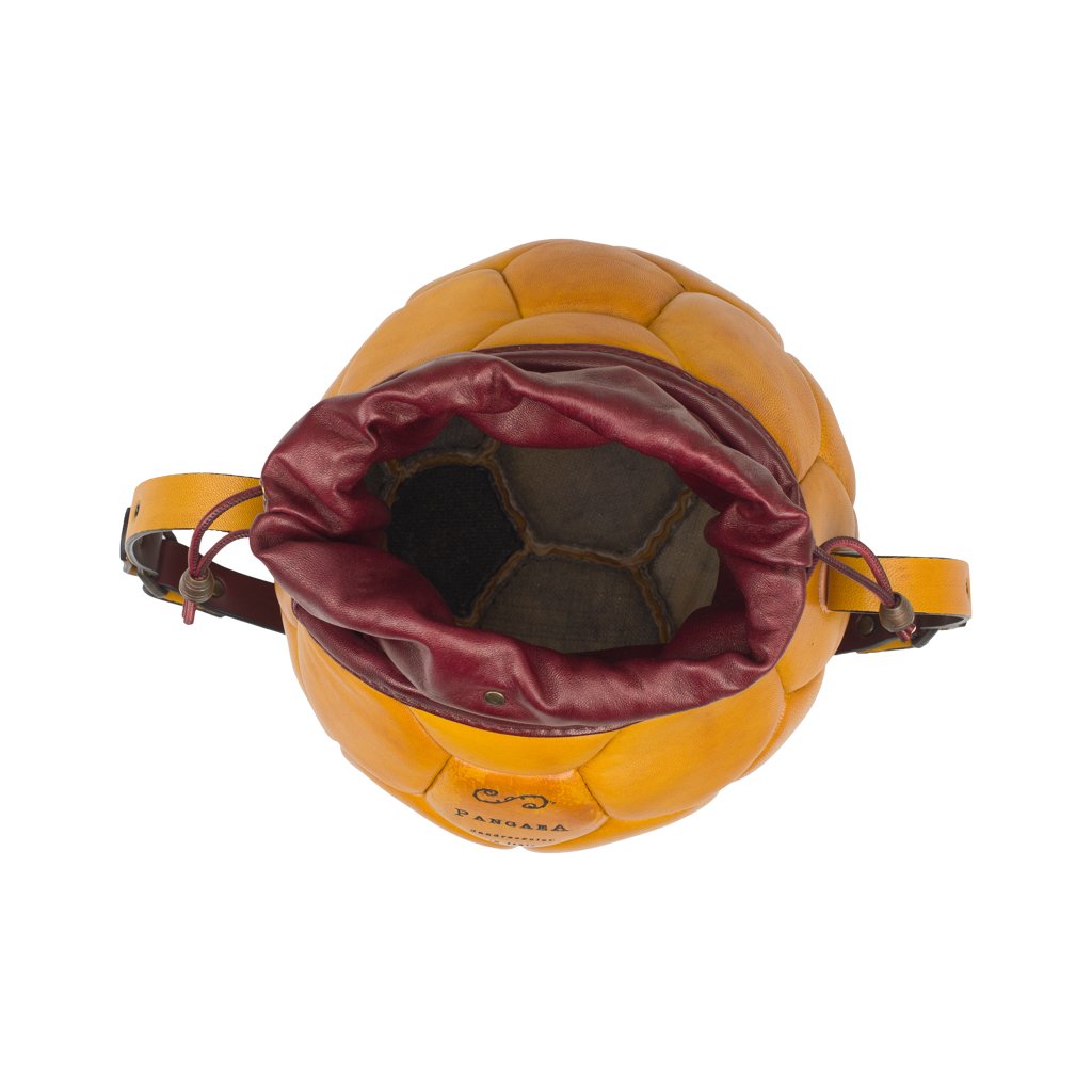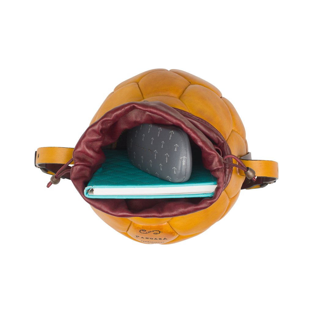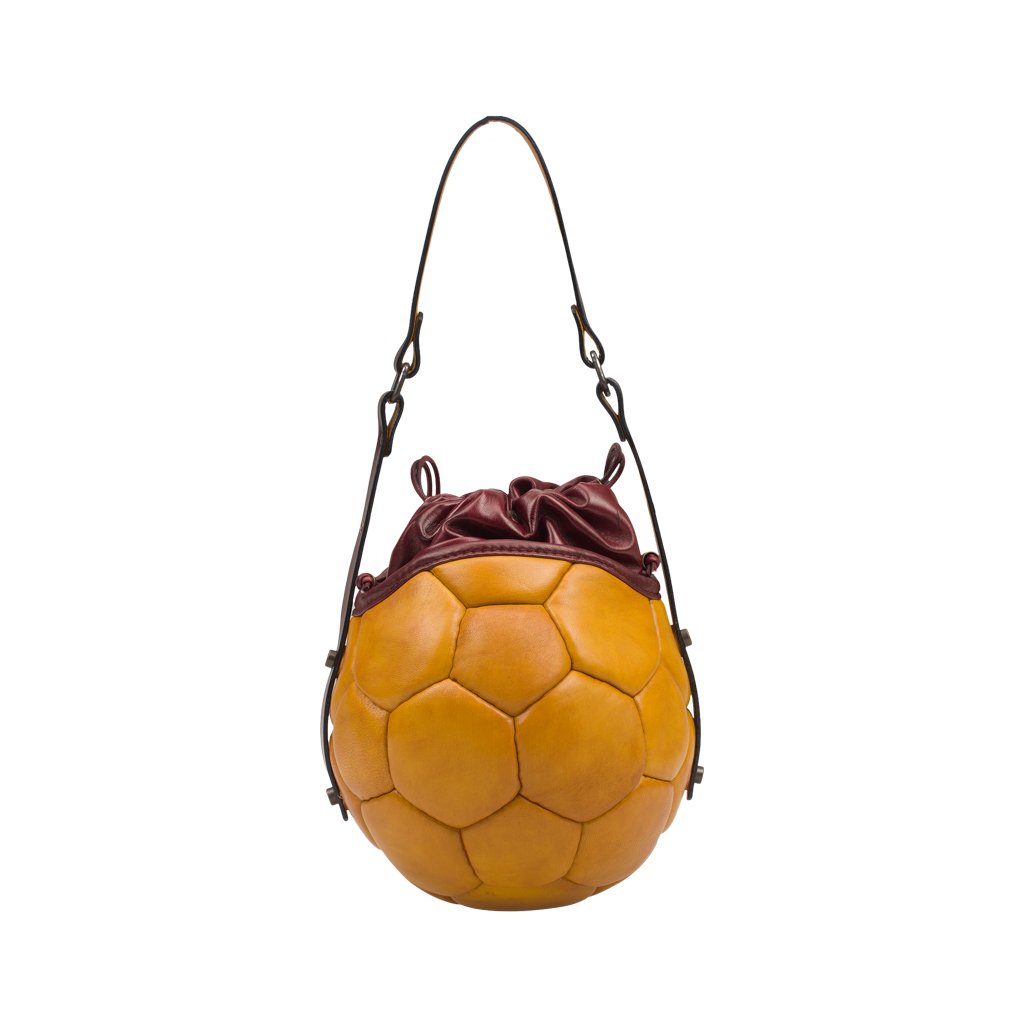 Pangaea is a shoulder bag crafted by Casadei della Chiesa in Padua, Veneto. This bag is created using an old soccer ball, lending to it a truly one-of-a-kind silhouette. Thomas dismembers the sphere, reassembles it, and adds a layer of Nappa leather for a chic finish. Open the drawstring to find a spacious interior, where the original stitching of the ball can be seen. If you're on the hunt for a sustainable yet stylish accessory, Pangaea is the bag for you.