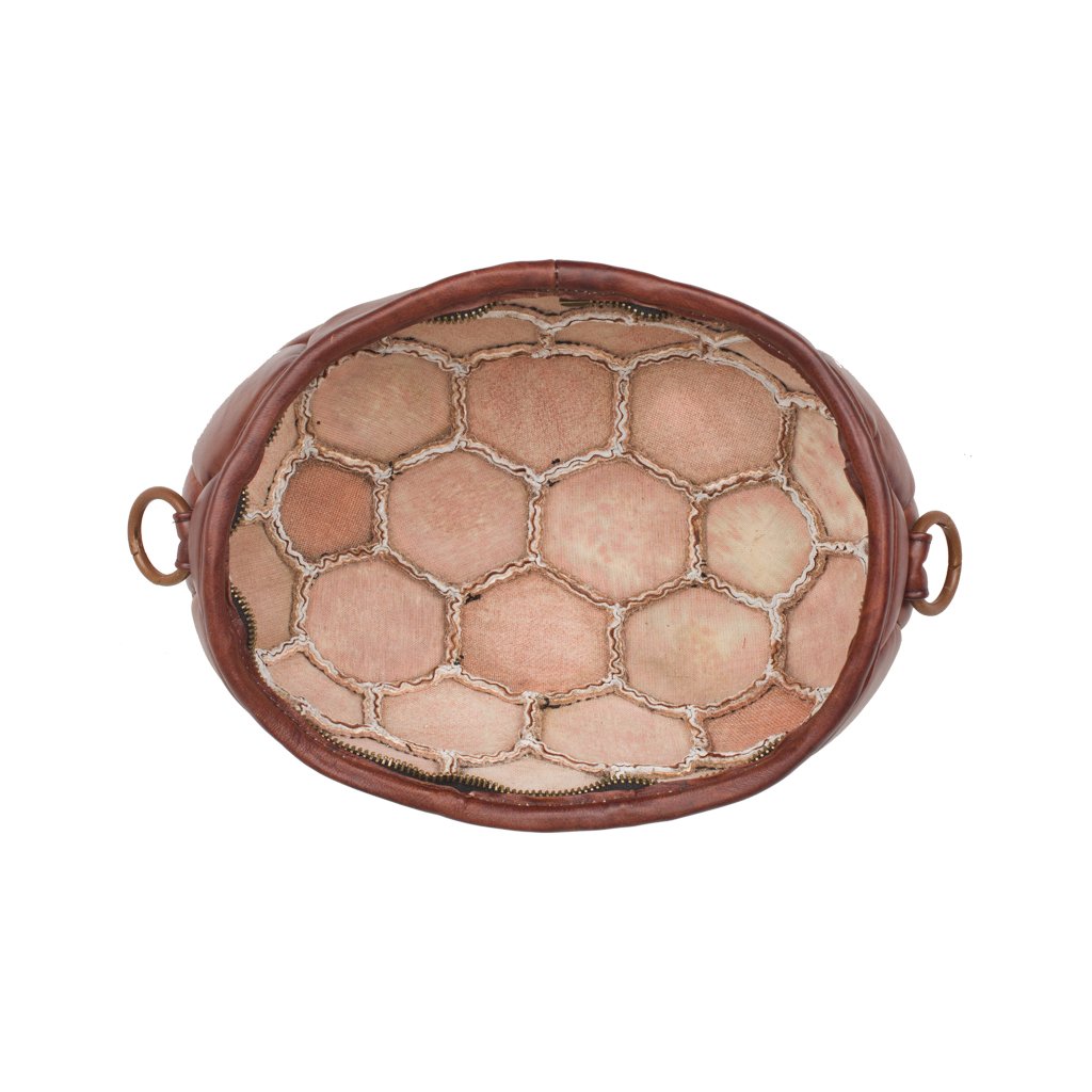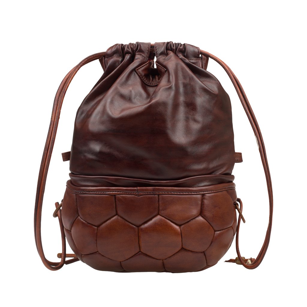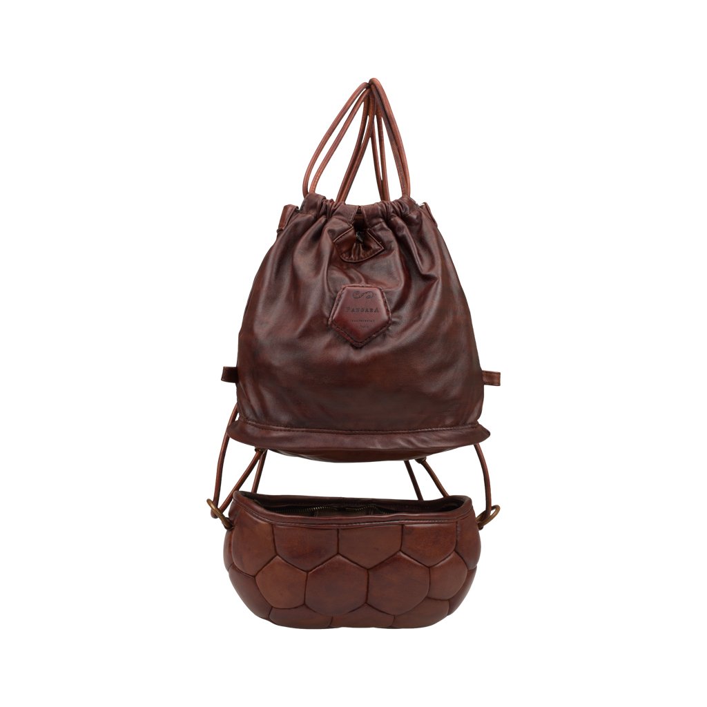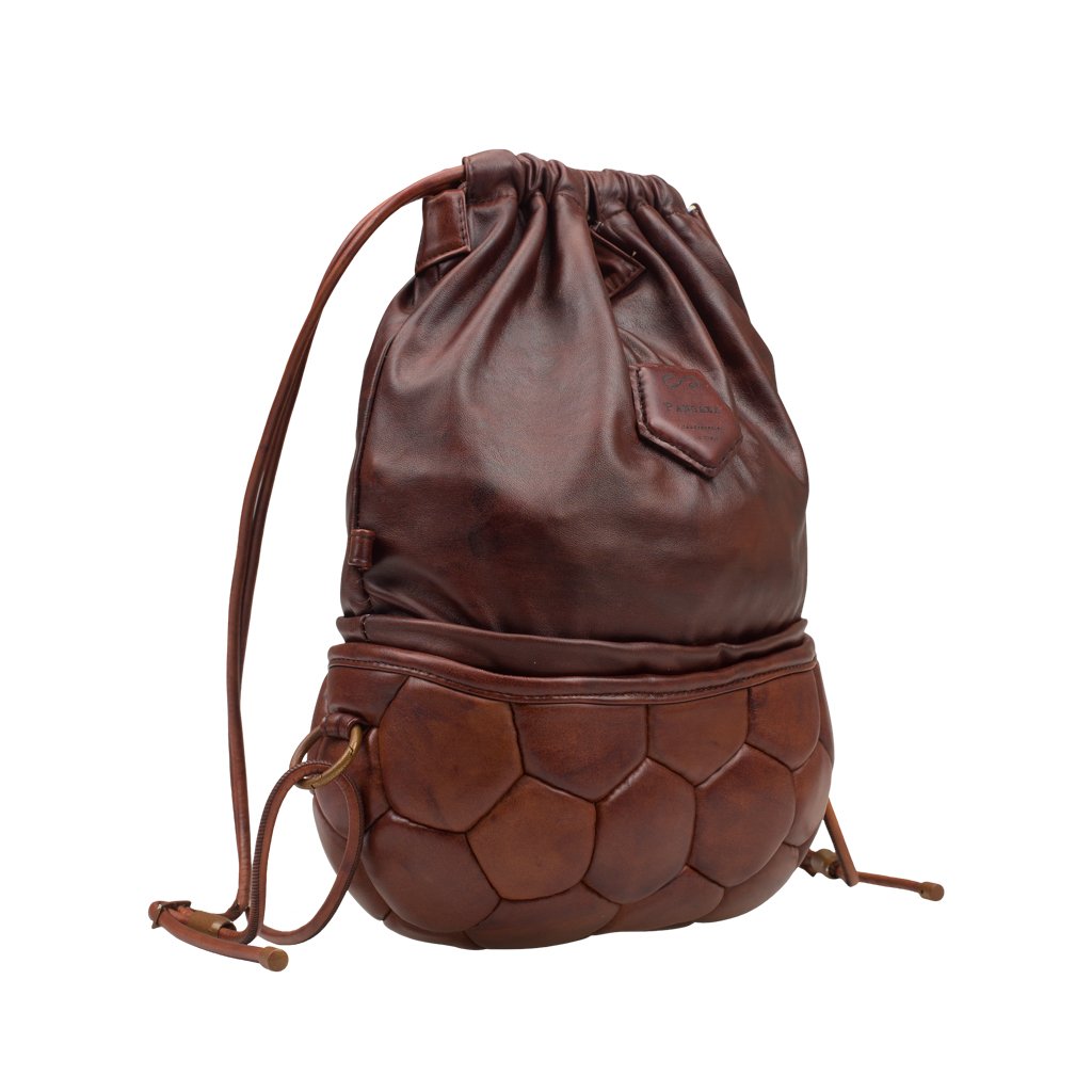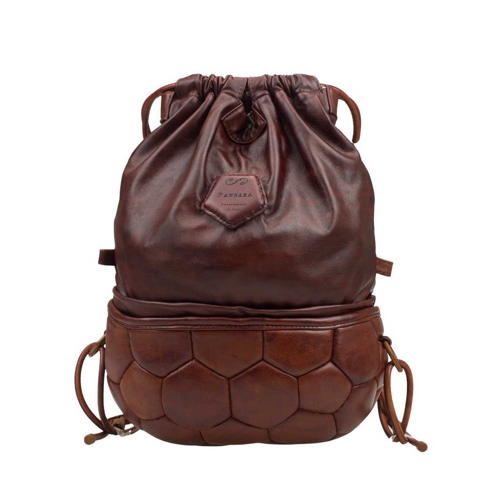 Pangaea Mezza is a backpack crafted by Casadei della Chiesa in Padua, Veneto. Similar to Pangaea, this rendition is also made of bovine leather with the bottom part upcycled completely from a soccer ball. Thanks to the adjustable drawstrings, the backpack can be carried as a large shoulder bag as well. Detach the top part to be used on its own for a practical, everyday look.