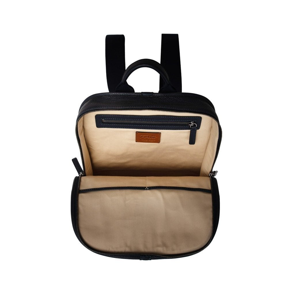 Raphael is a backpack crafted in the workshop of Fortu in Milan. Made of calfskin leather, it features a minimalist design that exudes sophisticated, understated style. In this navy colour it takes on a sporty feel that makes it perfect for everyday wear and carrying your laptop and personal items with you, both when travelling and going to the office and around town. - 100% Made in Italy