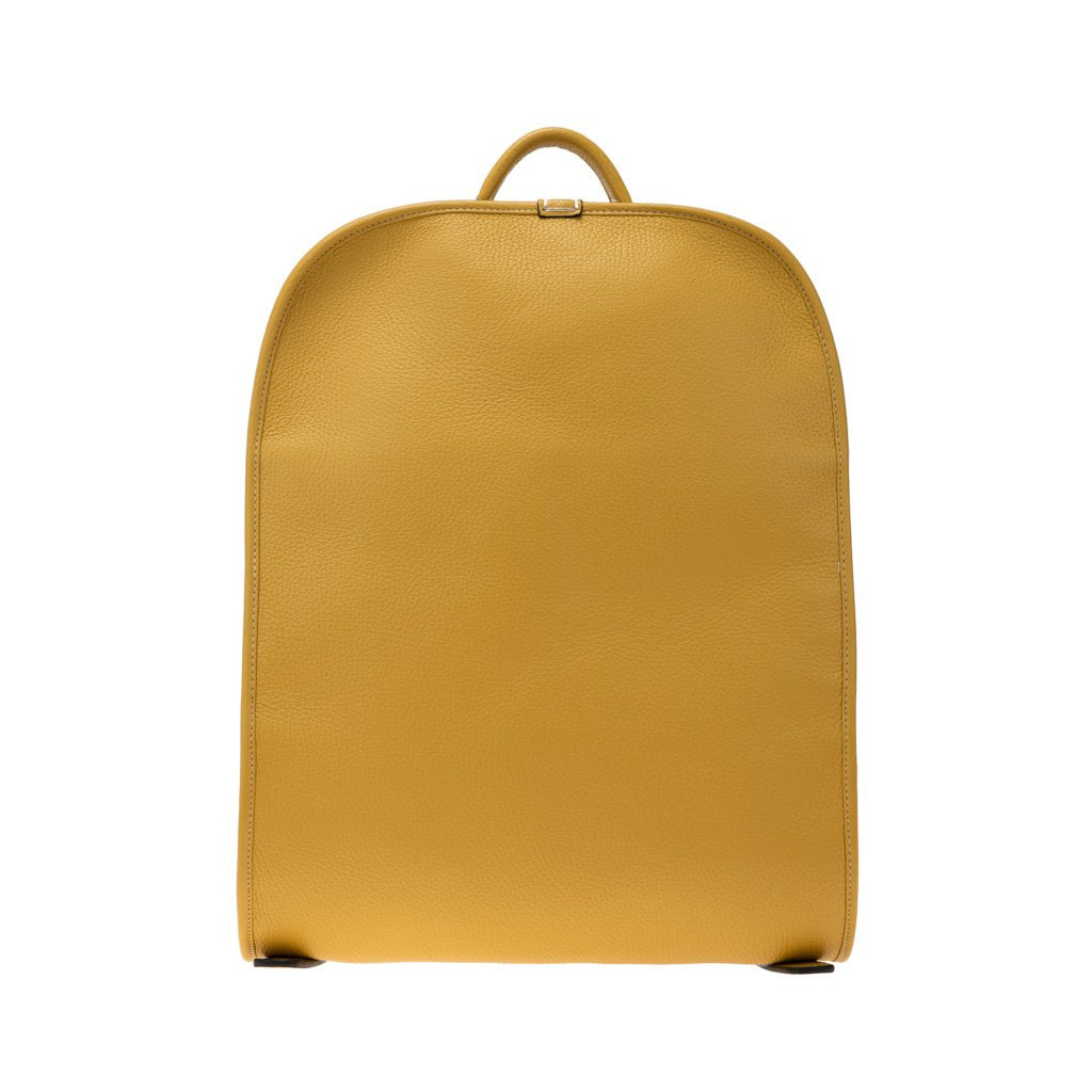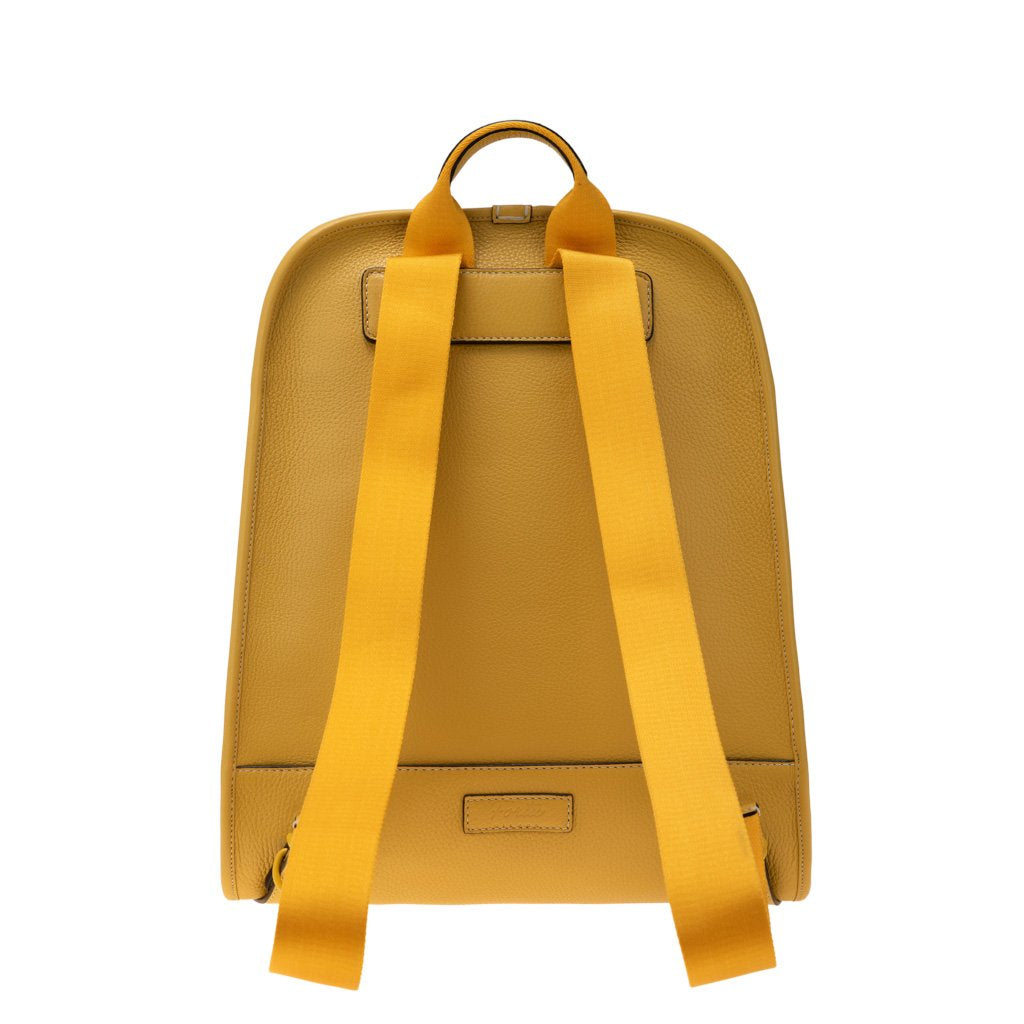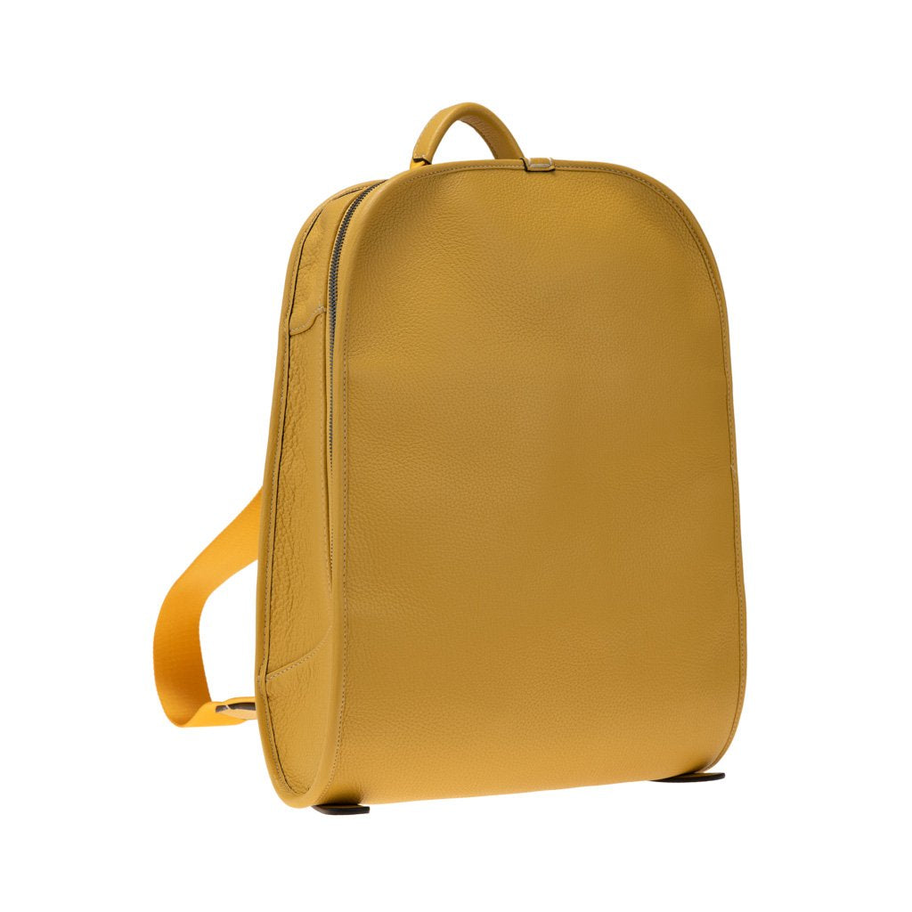 Raphael is a backpack crafted in the workshop of Fortu in Milan. Made of calfskin leather, it features a minimalist design that exudes sophisticated, understated style. In this yellow colour it takes on a sporty feel that makes it perfect for everyday wear and carrying your laptop and personal items with you, both when travelling and going to the office and around town. - 100% Made in Italy