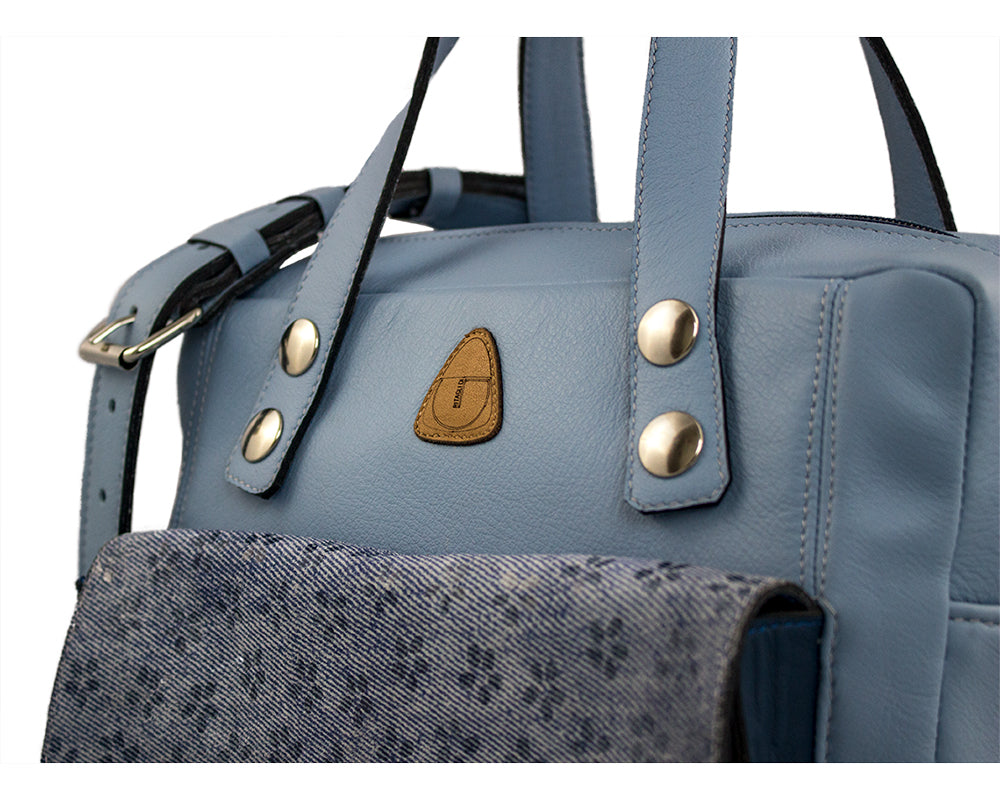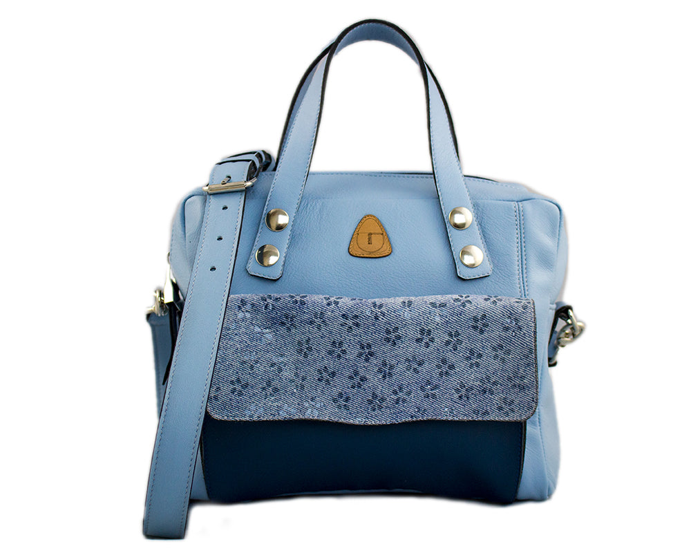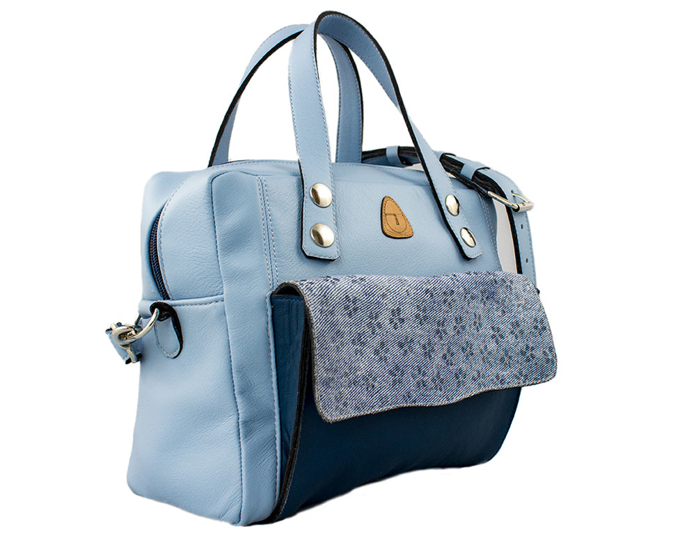 Young style bag in authentic upcycled leather with useful front pocket in printed leather with magnetic closure.