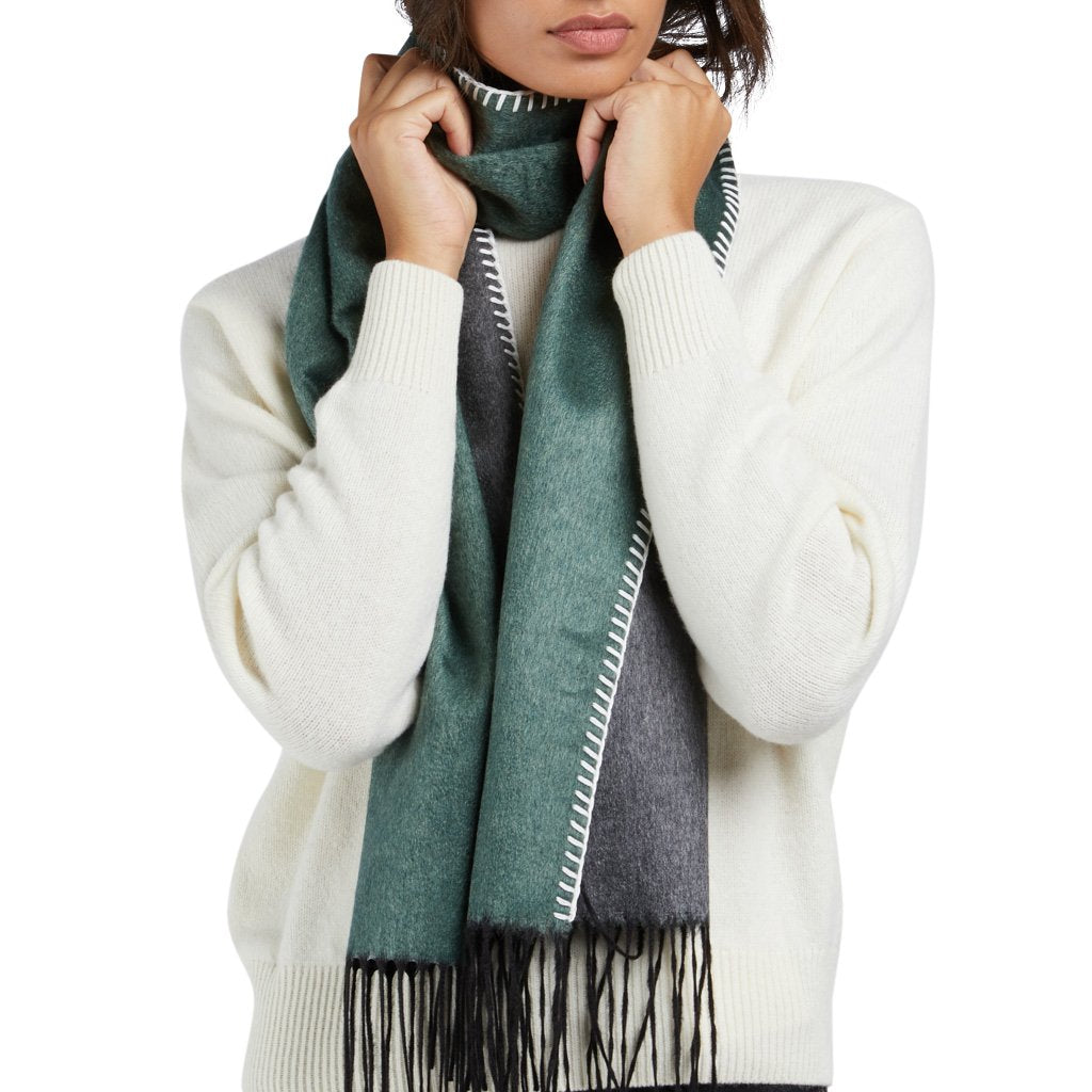 Romana is a scarf woven by Doria & Dojola in Biella. This two-tone scarf is made from a luxurious and dense Cashmere Silk blend, featuring vivid colours on either side. Great as a gift and wonderful teamed with some luxurious cashmere gloves or hat.