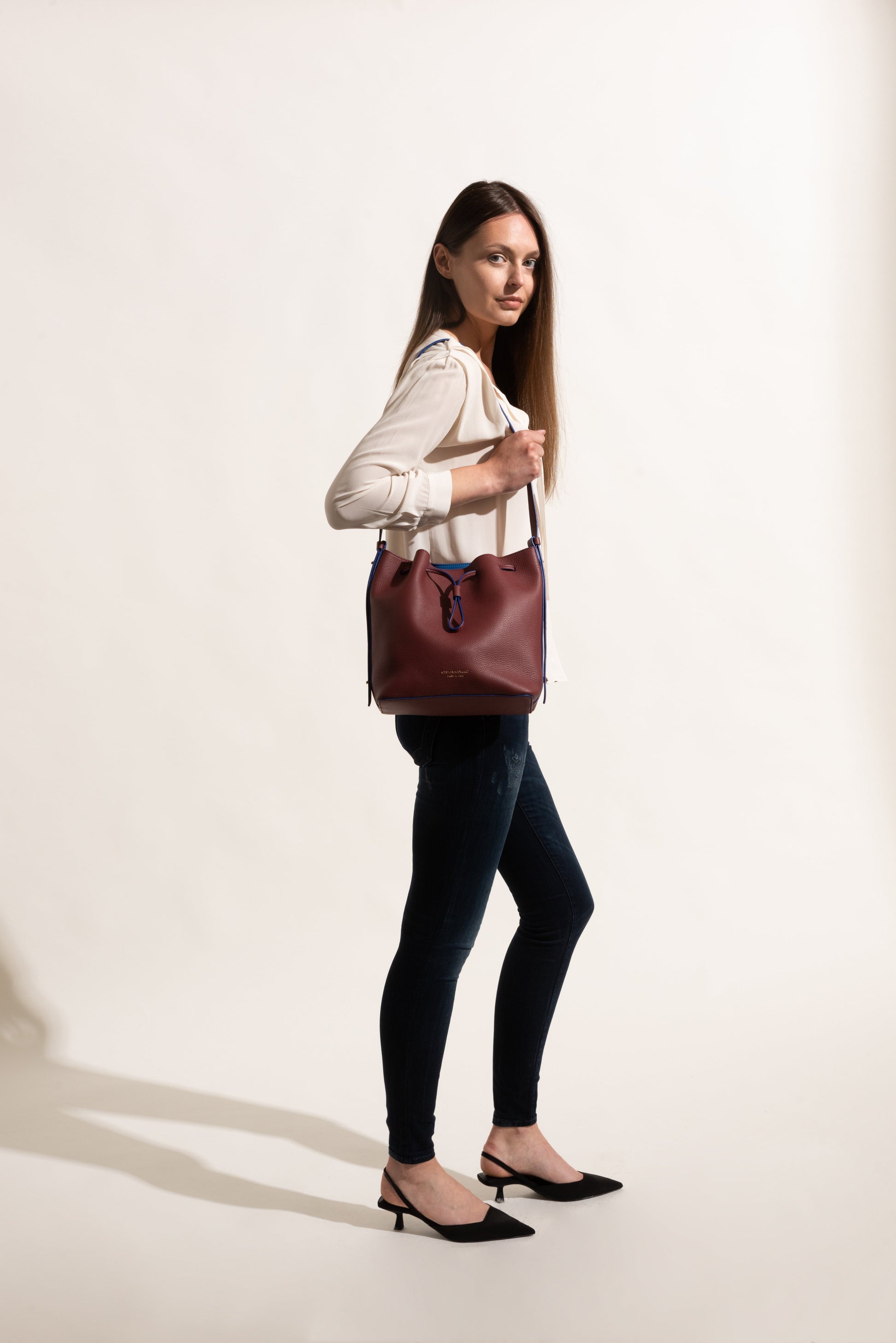 Sandra B is a bucket bag crafted by the expert artisans of Cristian Marcucci in Bagno a Ripoli, Tuscany. Made of luxurious calfskin leather, it is a minimal bag, yet stylish enough to stand out from the crowd. Featuring a roomy interior and a inner pouch to safely store your essentials, Sandra B is perfect for work and play.