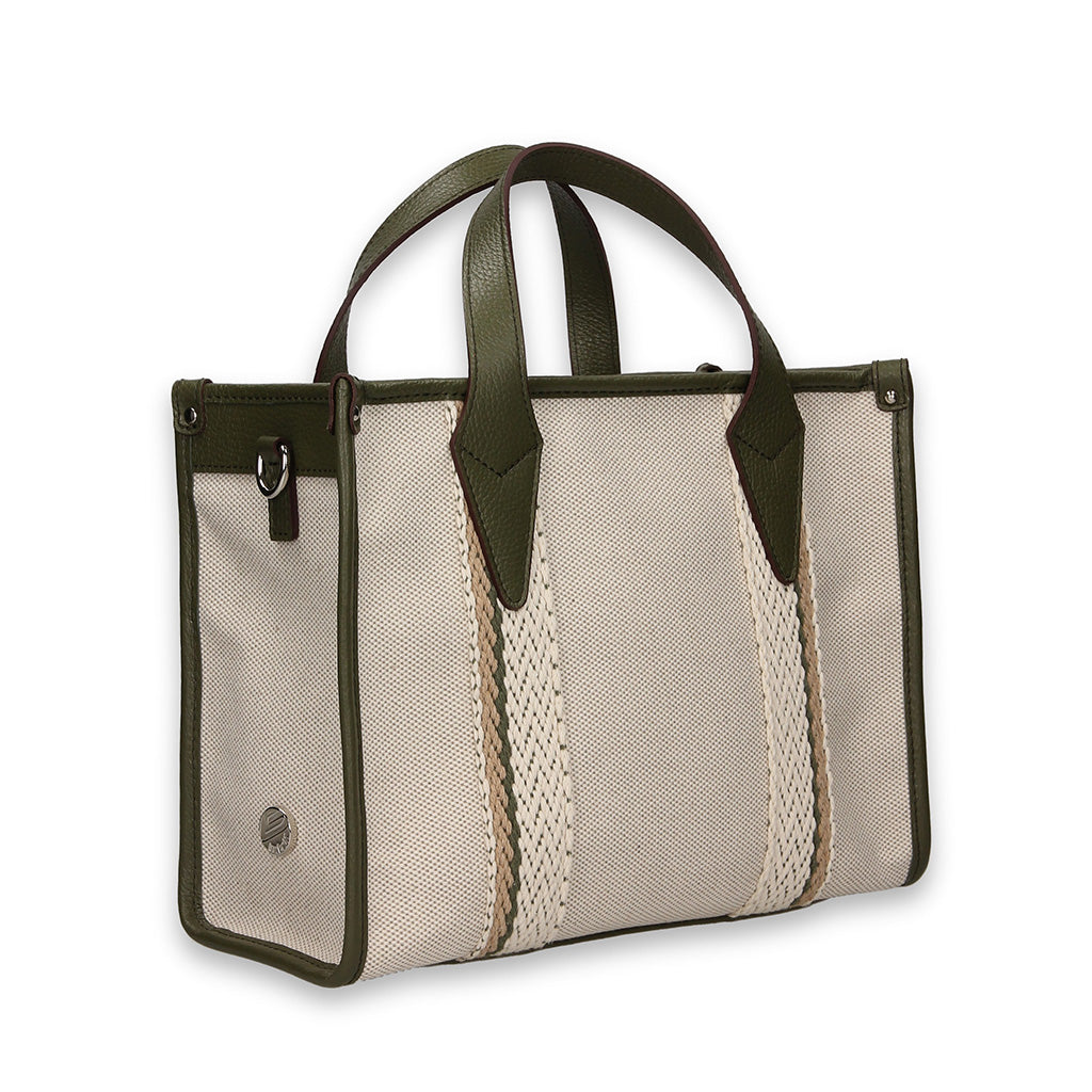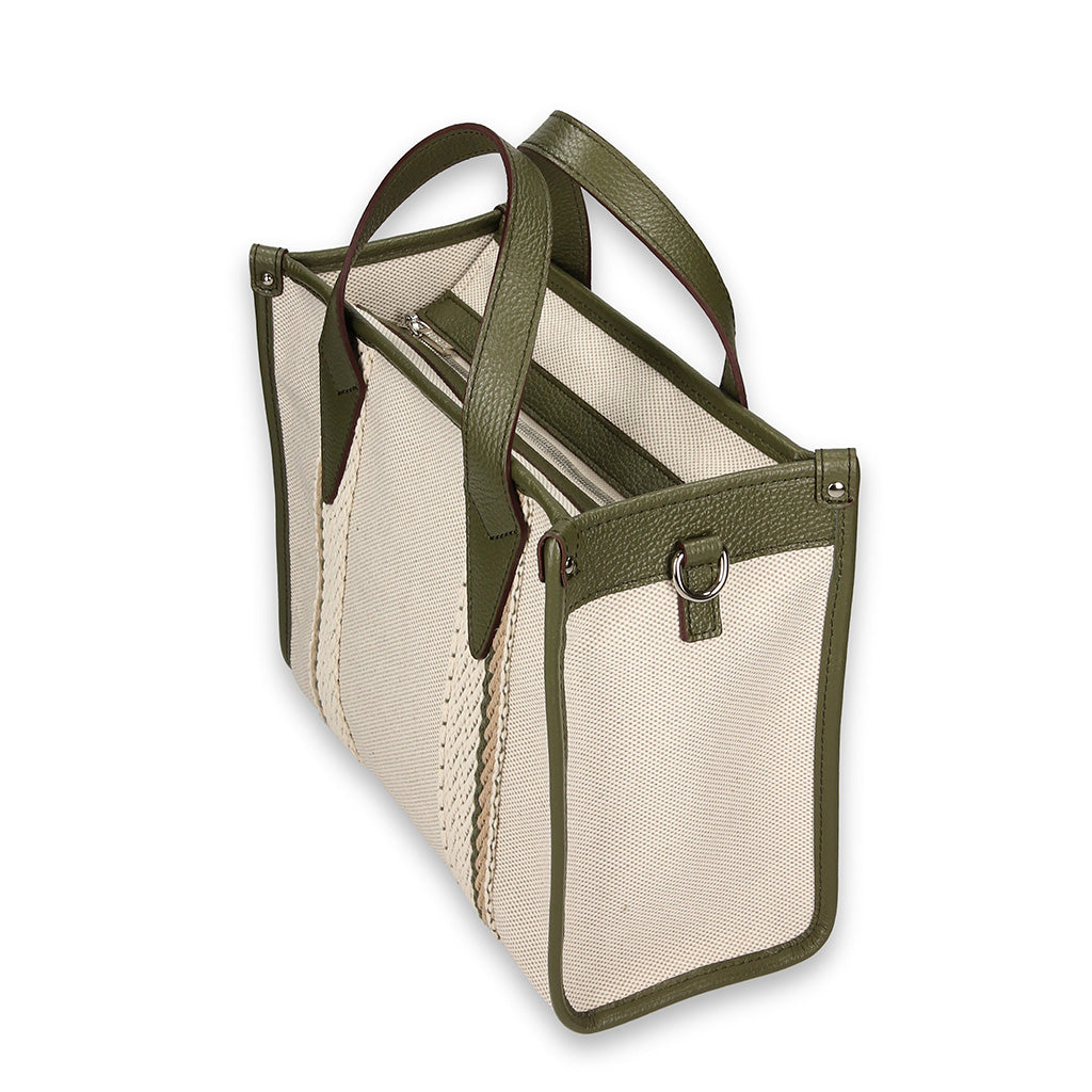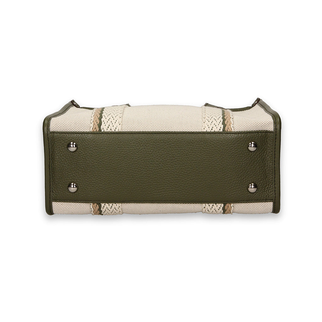 STRIPES MD is a tote bag develped with the traditional Panama cotton canvas , jacquard matching tapes and calf leather trimming.- 100% Made in Italy