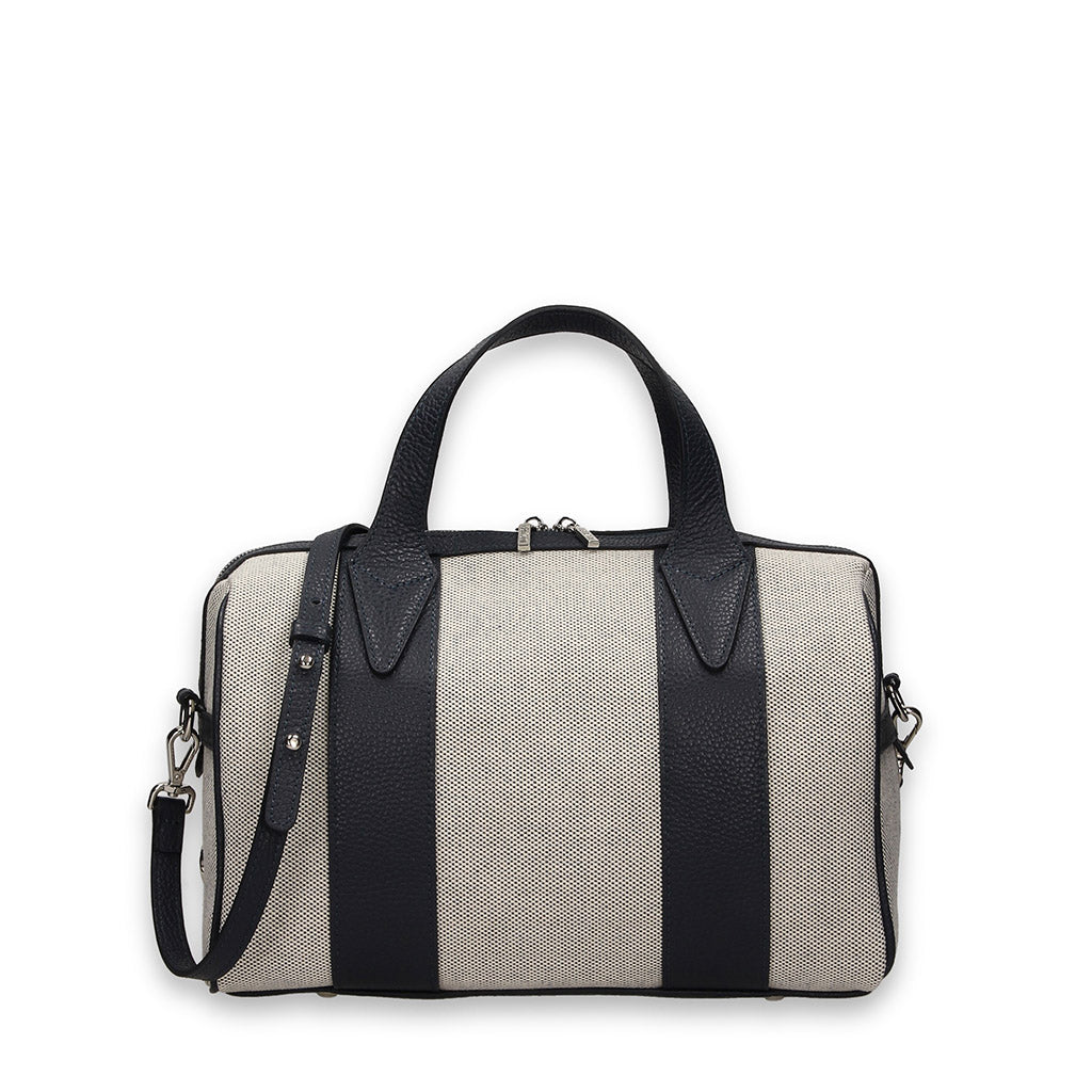VANITY GR is a Boston bag developed with the traditional Panama cotton canvas and calf leather trimmings- 100% Made in Italy