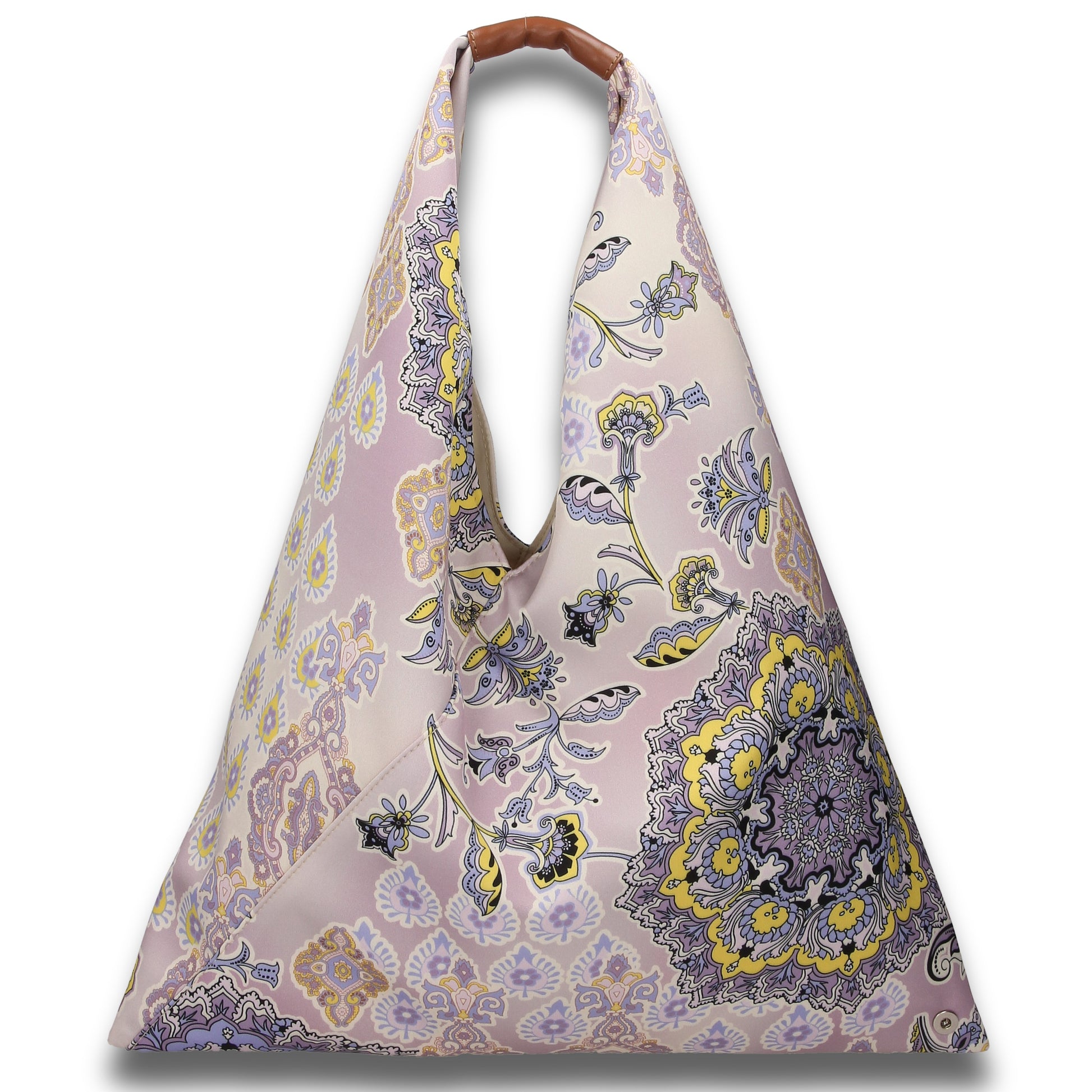 VENTAGLIO is a 2-Way shoulder bag developed with a satin touch printed fabrics and calf leather trimmings.- 100% Made in Italy