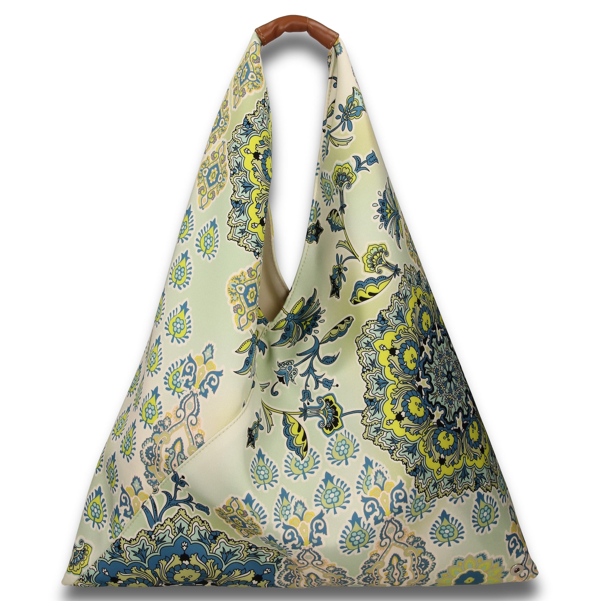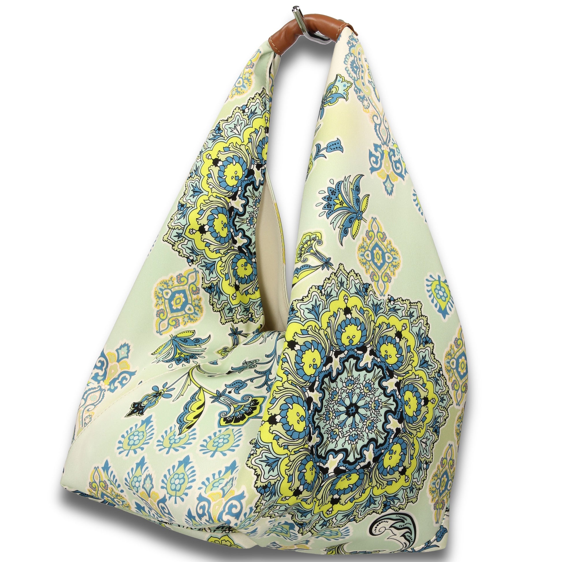 VENTAGLIO is a 2-Way shoulder bag developed with a satin touch printed fabrics and calf leather trimmings.- 100% Made in Italy